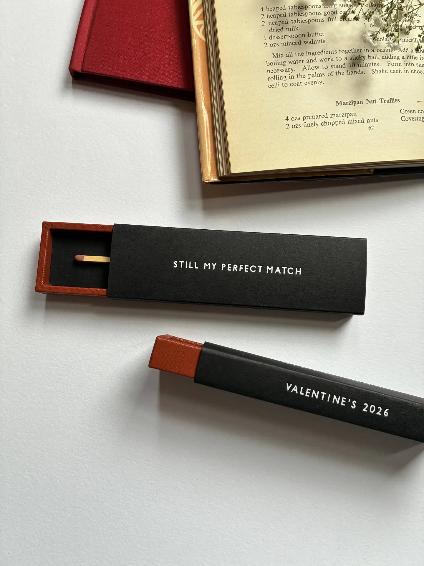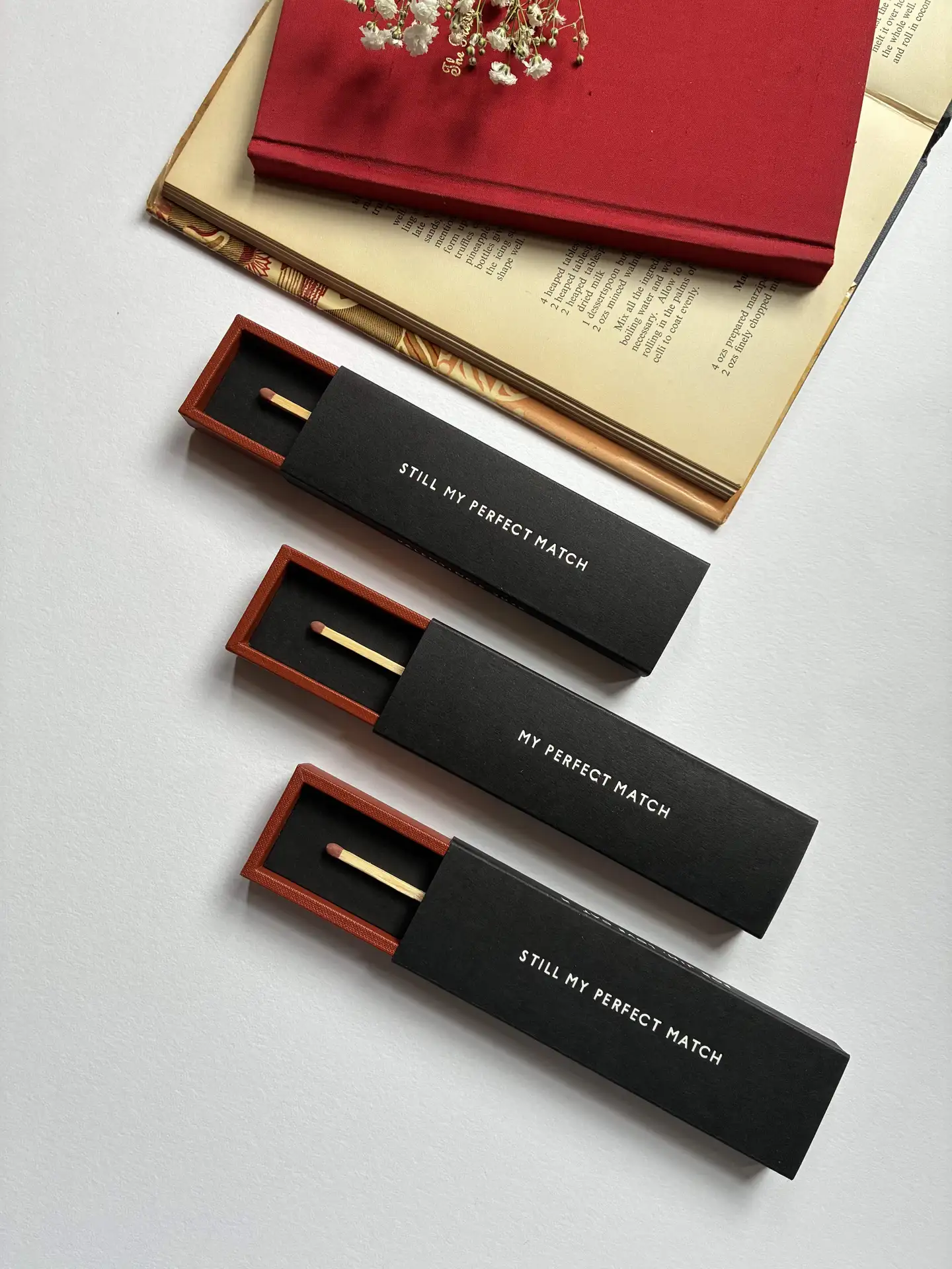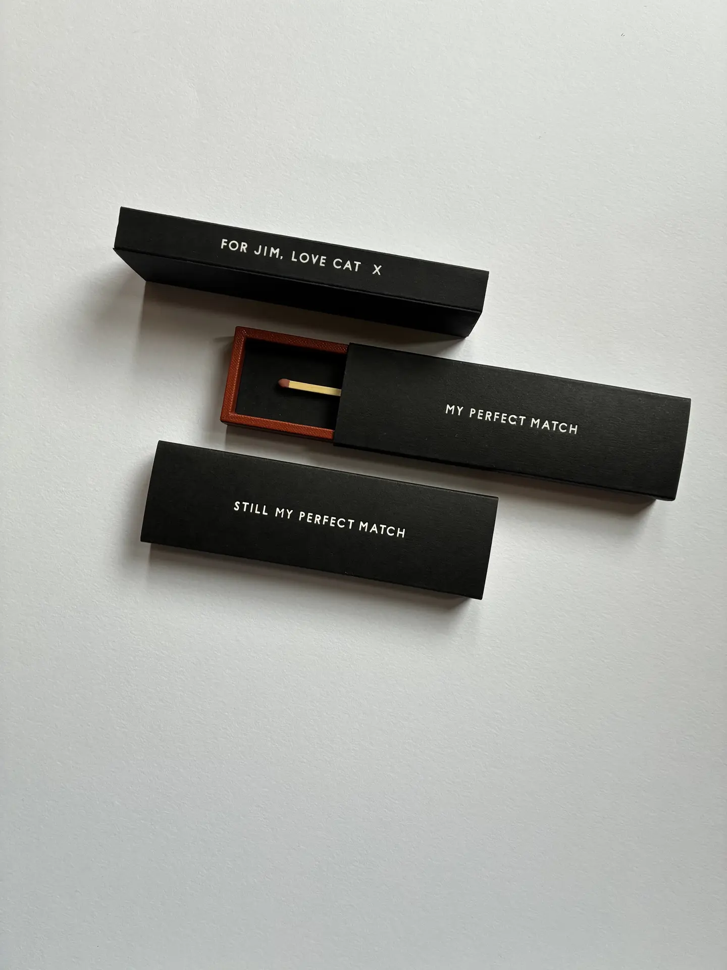 Each box houses a real, single match which is permanently attached.