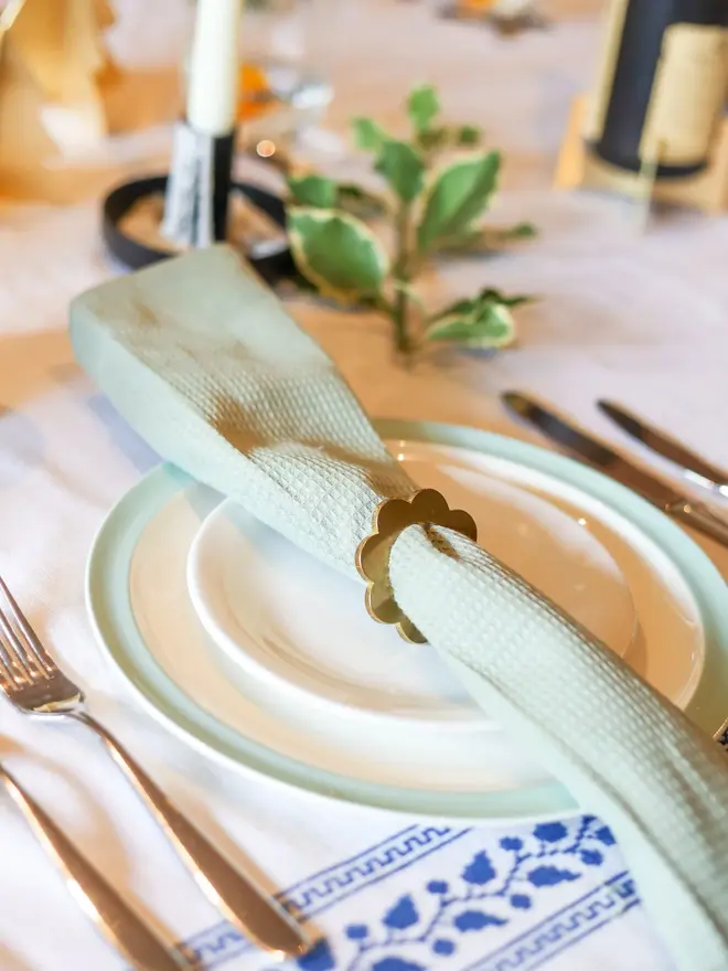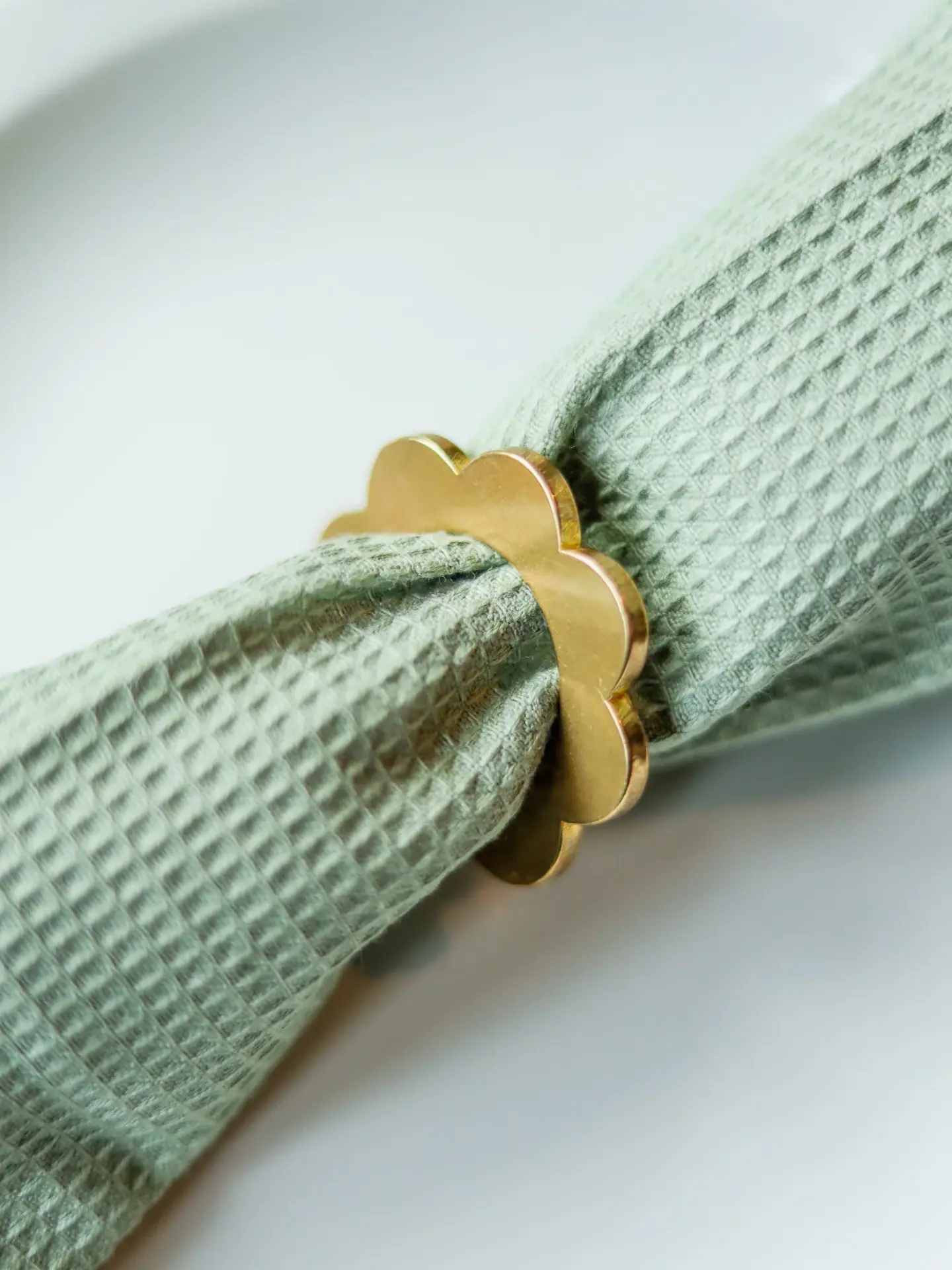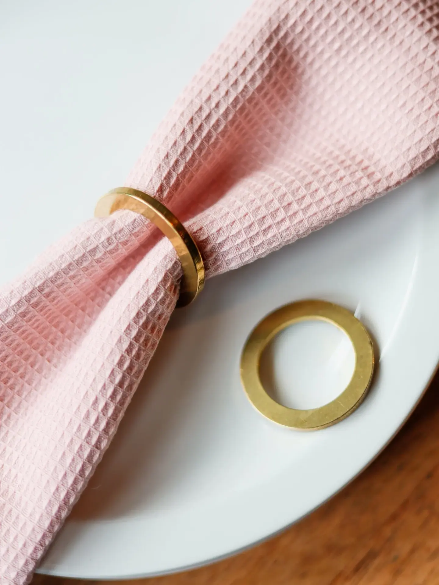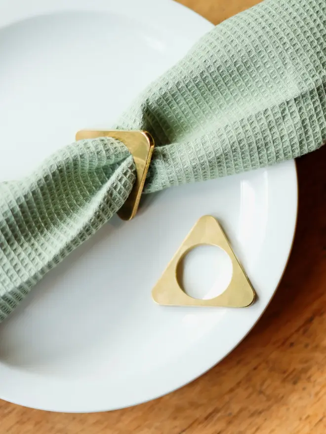 Add the finishing touches to your table setting with this stylish set of responsible brass napkin rings! Featuring three eye-catching designs: a scallop edged flower, triangle, and circle - these rumbled napkin rings will turn any meal into a special occasion. Whether you're hosting a dinner party or just bringing a little extra finesse to the dinner table, these are a favourite way to dress up any spread. Bon appetite!
