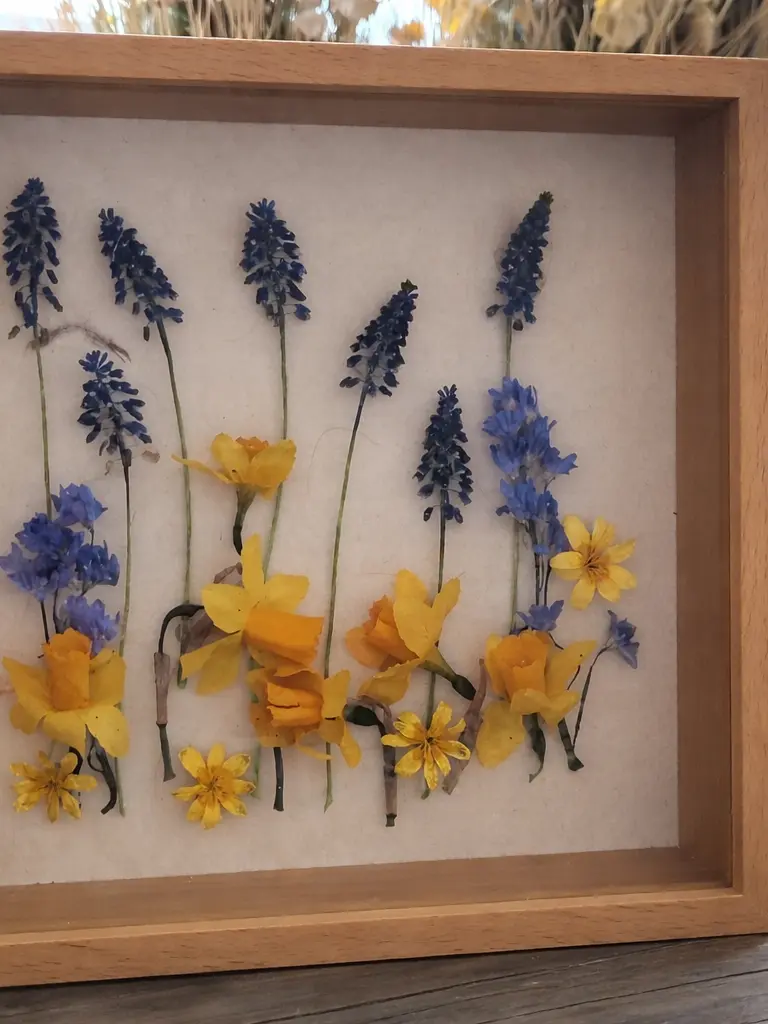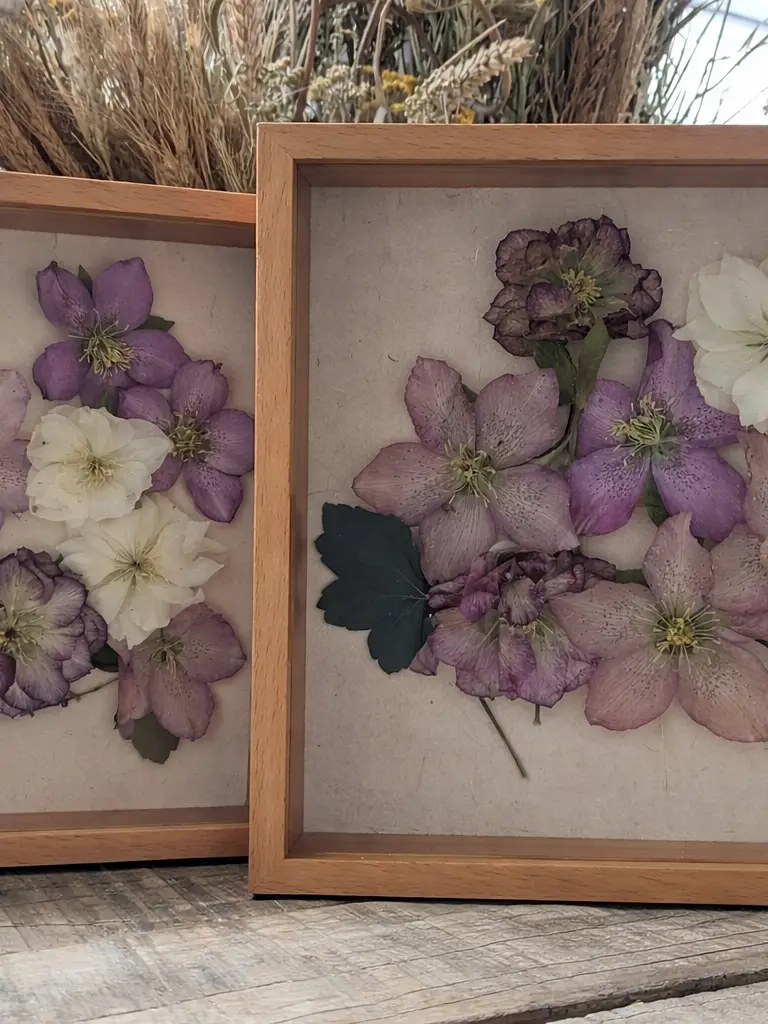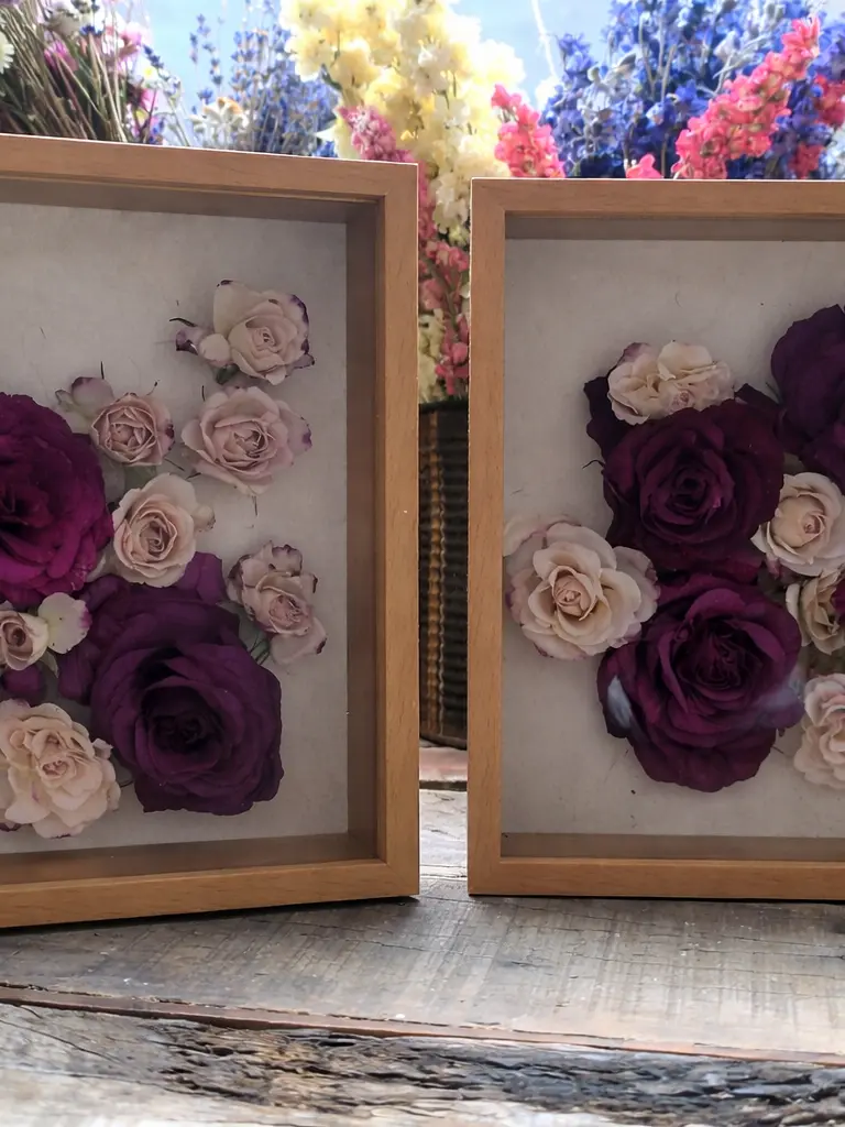 Bring the beauty of nature indoors with this handcrafted 8×8 inch deep picture frame, thoughtfully designed to showcase real dried flowers in a timeless, elegant display. Set within a light wood shadow box frame, each arrangement is carefully composed using flowers preserved with silica gel to maintain their natural shape, colour, and delicate detail—capturing the look of freshly picked blooms for years to come.