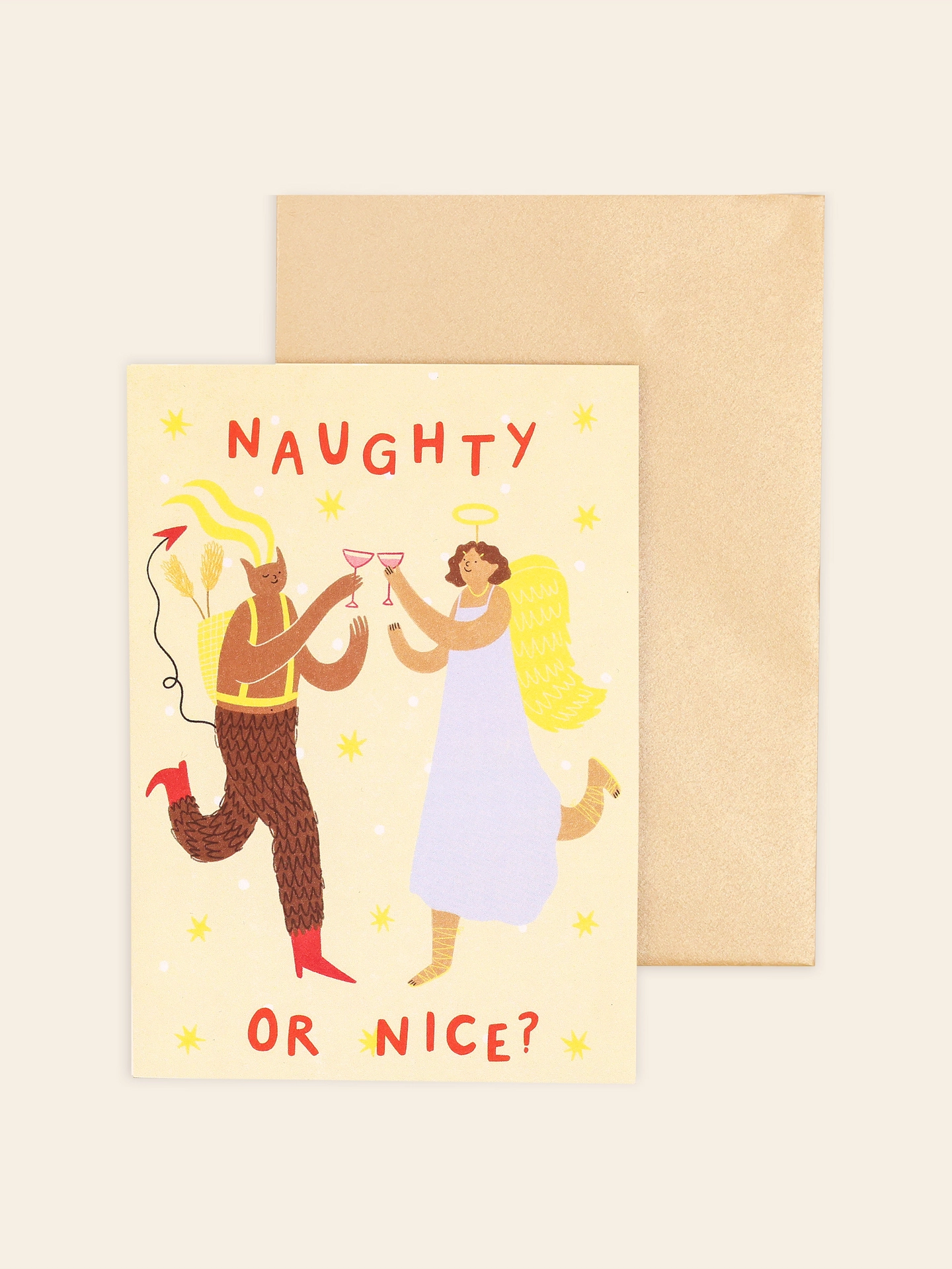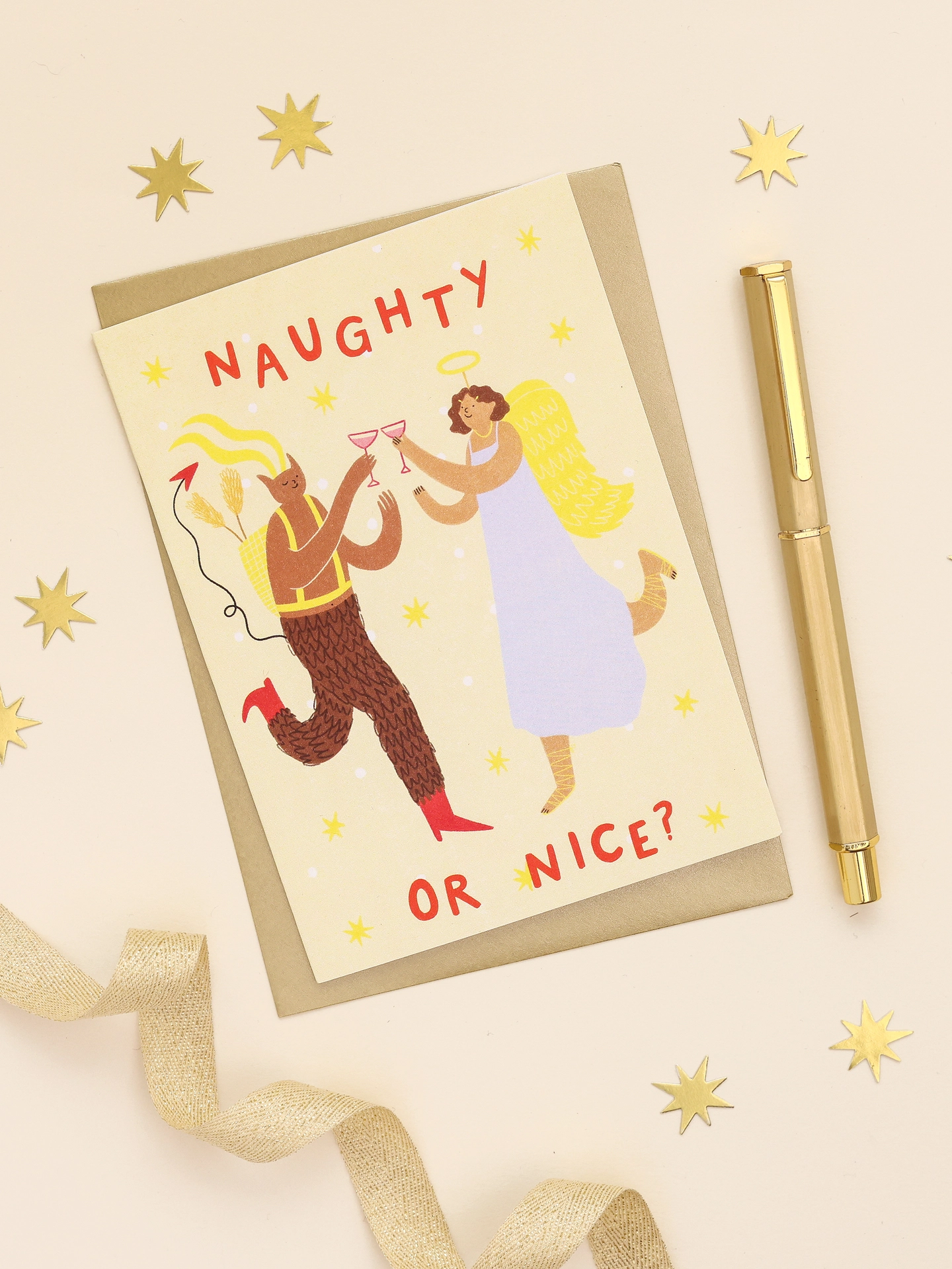 Naughty or Nice Christmas Card | Krampus Card | Folky Card