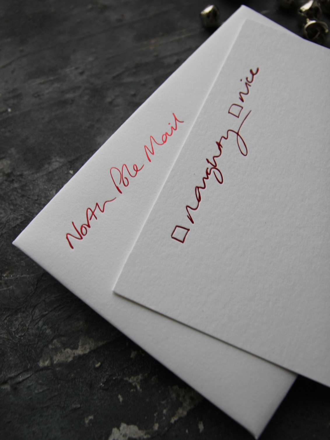 Finished with a matching envelope, hand-foiled with “North Pole Mail” in red for that straight-from-Lapland feel.