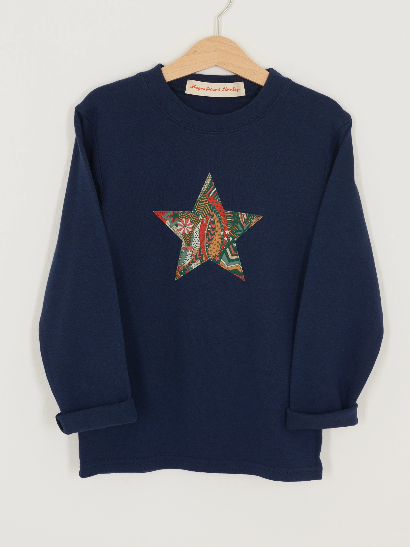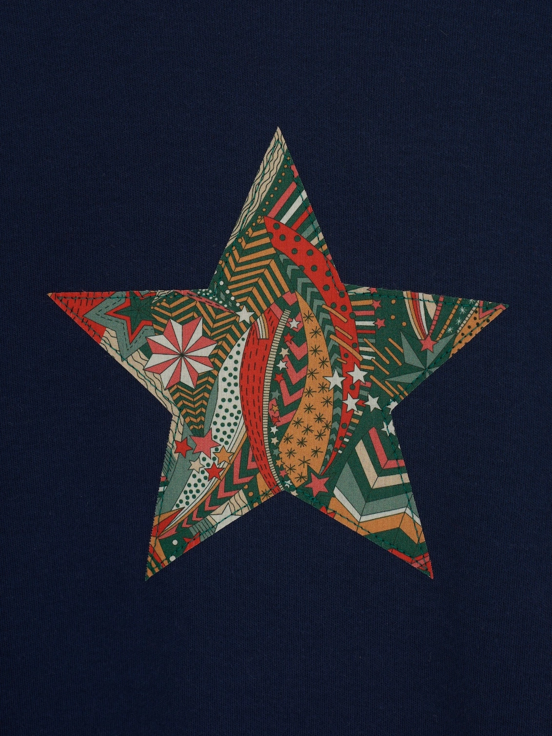 Get your children into the holiday spirit with our navy star t-shirt featuring a festive Liberty My Little Star print. Made with super soft, comfortable cotton, this t-shirt will keep your kids feeling festive and cosy all season long. Show off your love for Christmas in style!