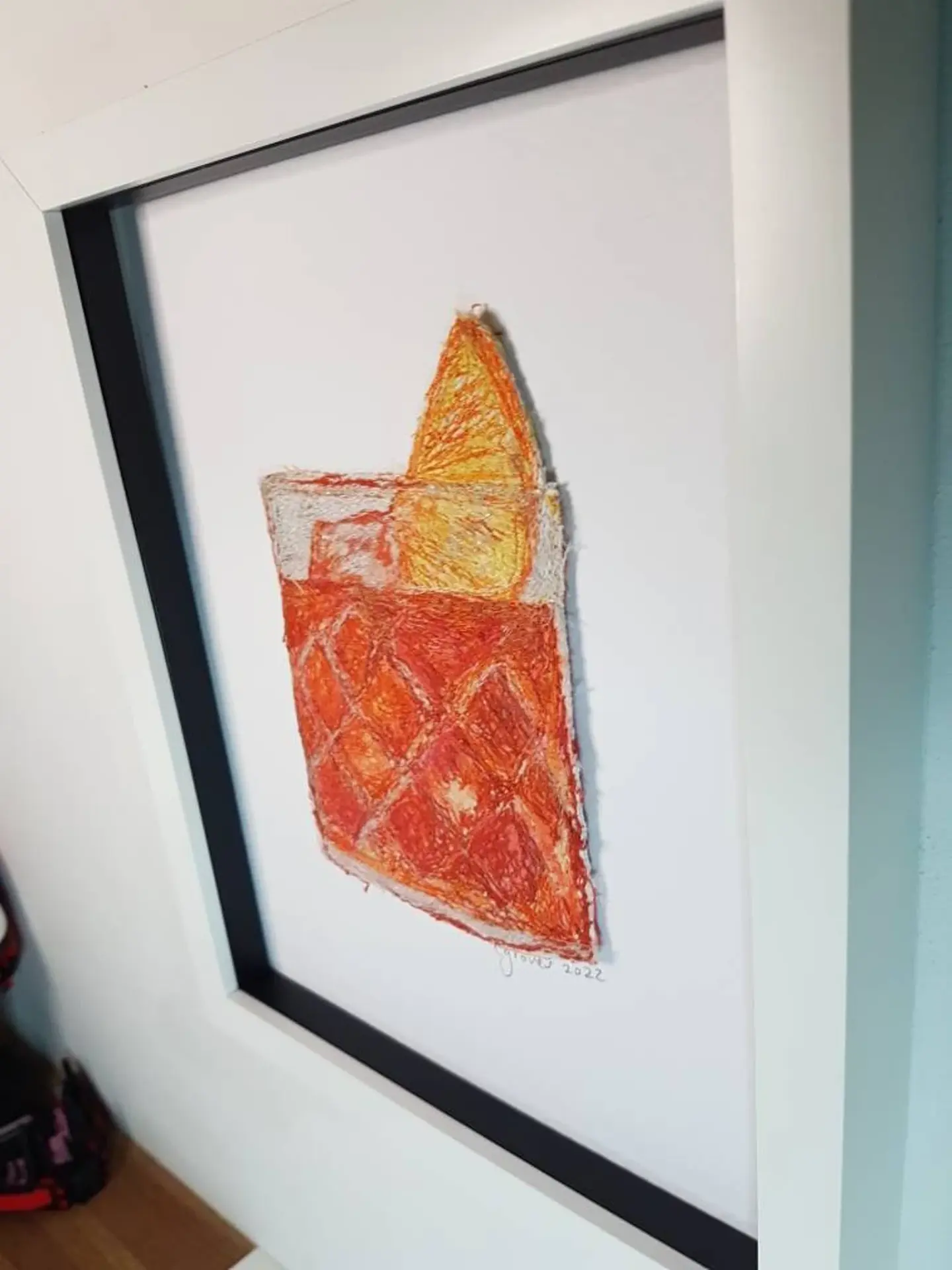 This Negroni Cocktail embroidery is lovingly created on my beloved Bernina sewing machine using free-motion stitching, then hand-painted with fabric paints to add beautiful detail and depth...