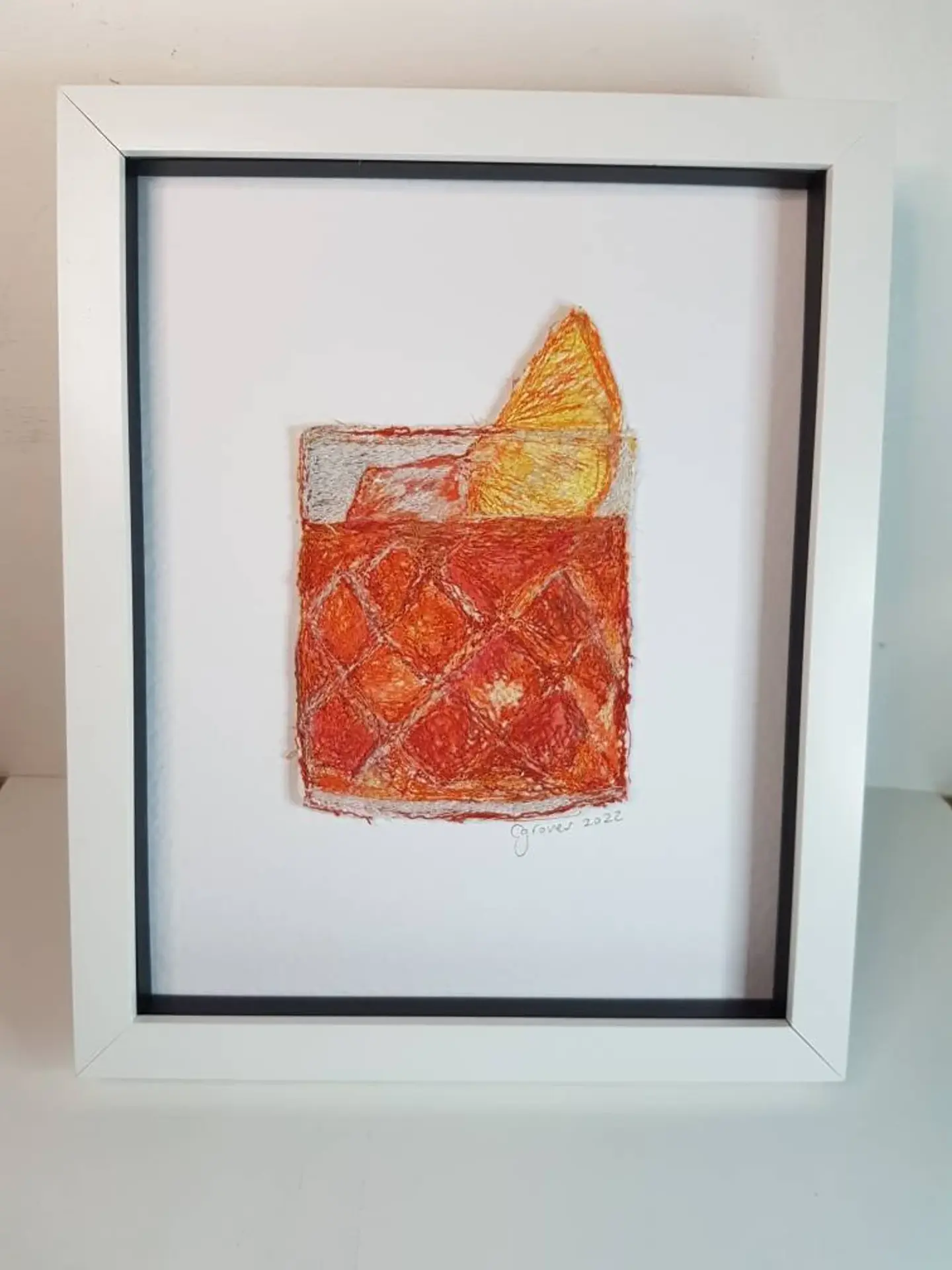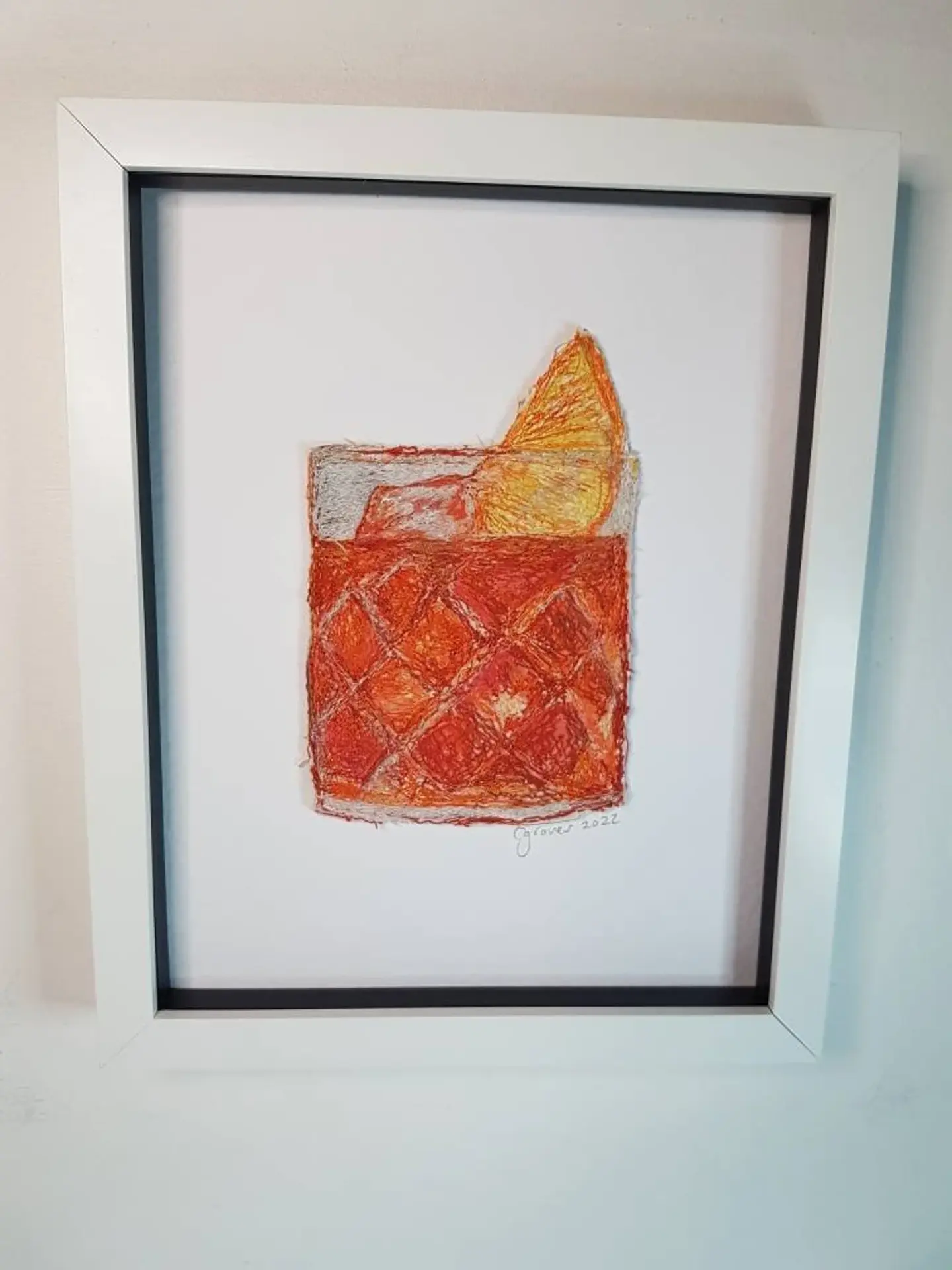 Negroni Cocktail Free Motion Embroidery Wall Art