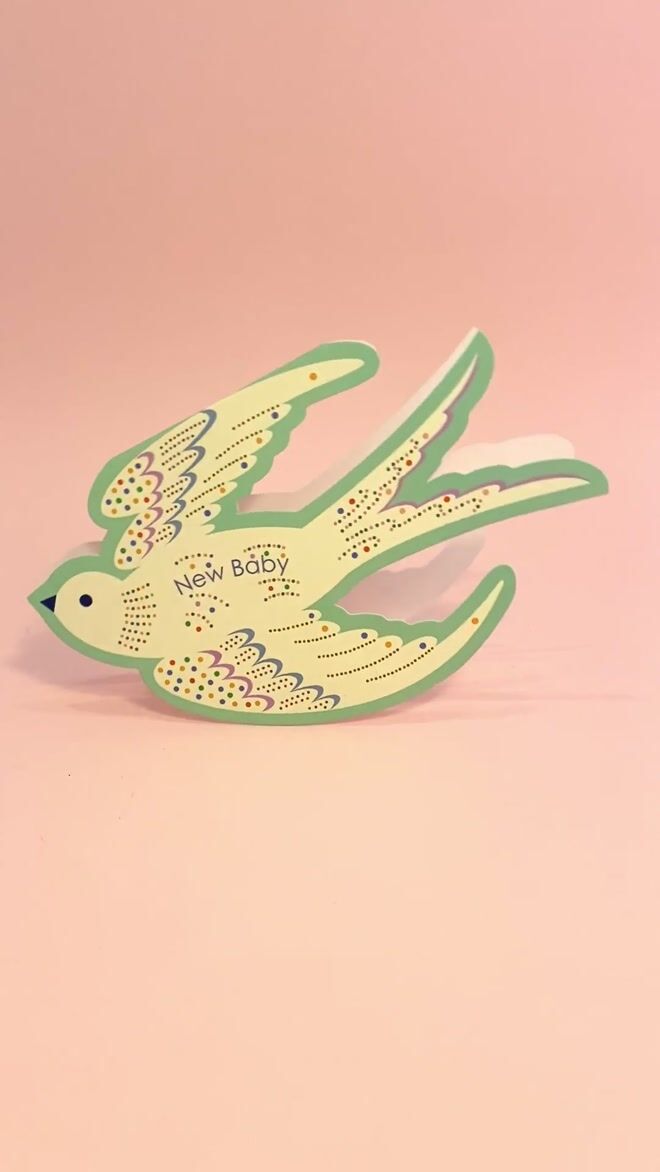 Celebrate a new arrival with this enchanting die-cut baby card featuring a gentle rocking bird design. Printed in soft mint green and sprinkled with cheerful multicoloured dots, it’s a joyful way to welcome a little one into the world...