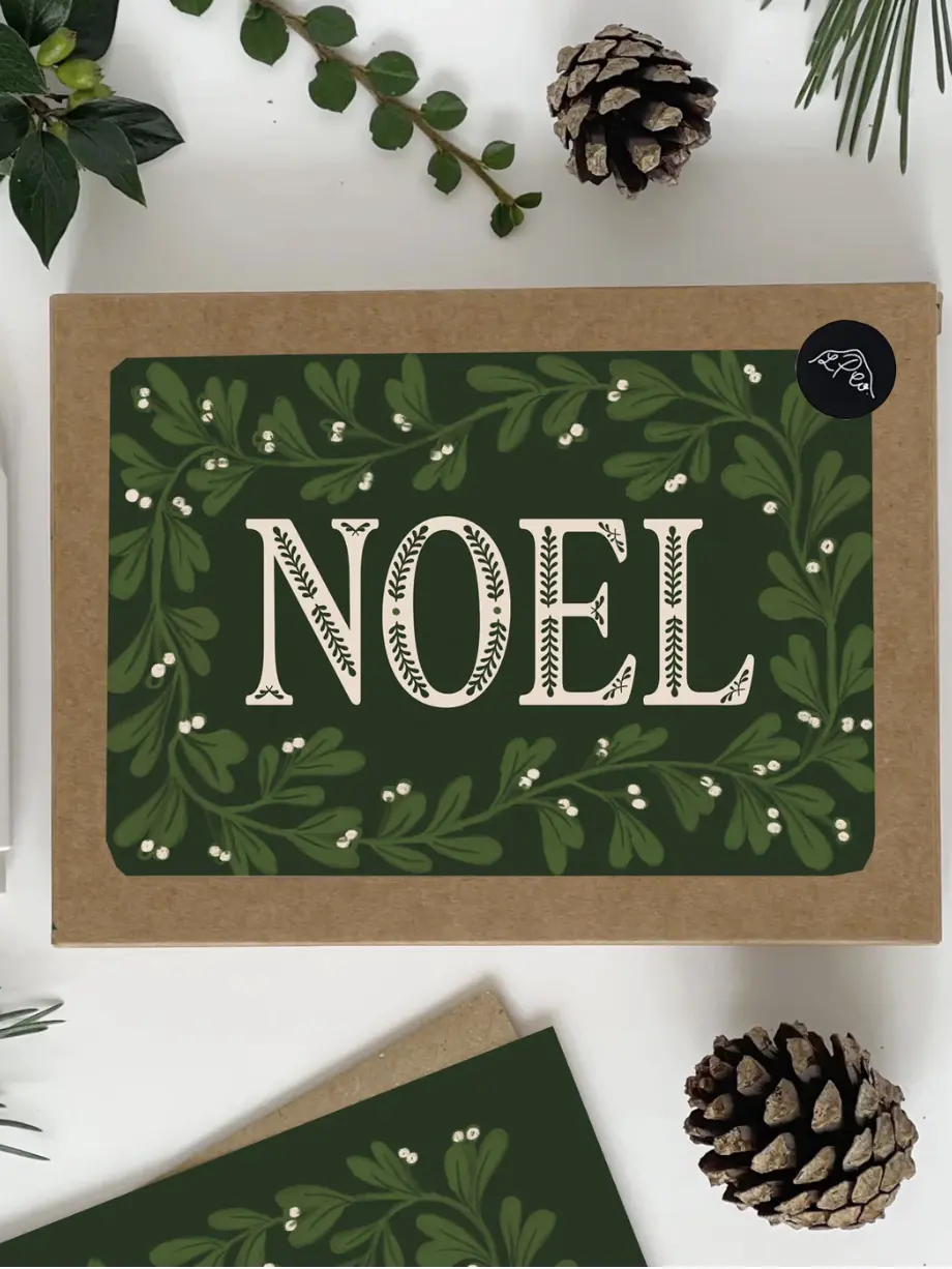 Celebrate the holiday season with the Noel Christmas Mistletoe Green Greeting Card Pack. This delightful set includes eight beautifully designed cards, each featuring a festive mistletoe motif and the word "Noel" elegantly displayed. Whether you're sendin...