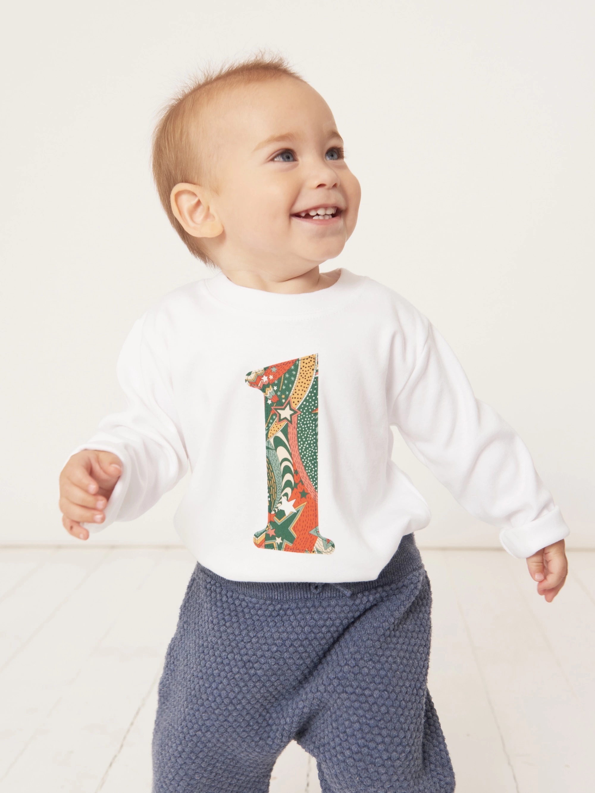 These beautifully soft white 100% cotton t-shirts are kind to delicate skin. They are lovingly hand appliquéd with the number of your choice in My Little Star Liberty Print Tana Lawn cotton.