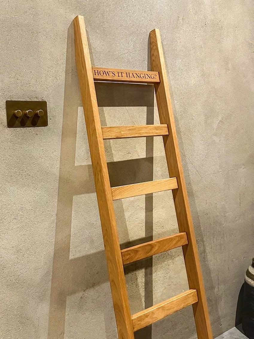 Stylish Storage Solution. Introducing the Ladder Rack, a beautifully crafted oak storage ladder designed to bring both functionality and elegance to your home. Perfect for organising clothes, towels, or any other items, this versatile piece is as practical as it is stylish. Offering ample space to hang or drape items across its six treads, each designed to hold and display your essentials with ease. Whether you're looking to organise your living space or add a personalised touch to your home, the Ladder Rack offers a perfect blend of style and utility. With its sleek design and custom engraving options, it’s the ideal solution for those who appreciate both form and function.