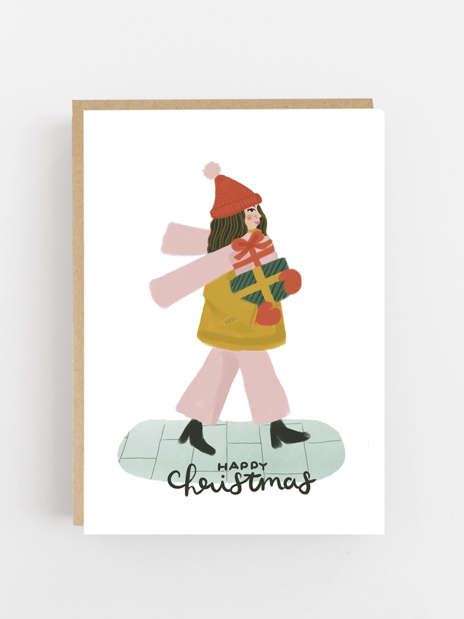 - 2 x Girl Delivering Gifts Happy Christmas