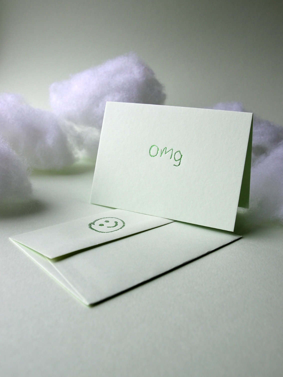 Sometimes one word says it all. omg is the reaction card for literally anything. Birthdays, big news, “you won’t believe this” moments. Hand-foiled on pistachio coloured with a shiny finish and matching smiley envelope. Sweet and dramatic at the same time.