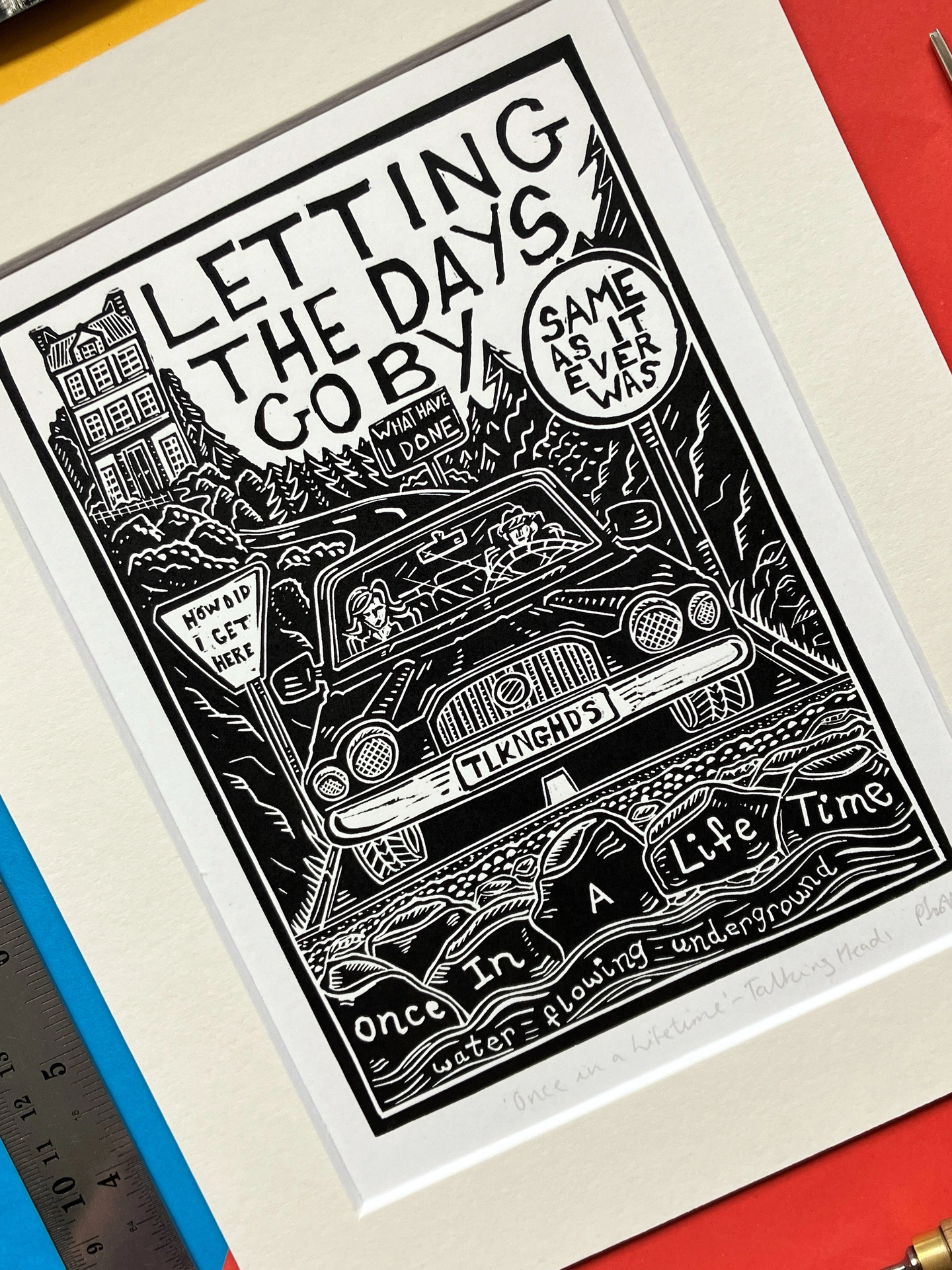 'Once in a Lifetime': Talking Heads Lyric Linocut Print