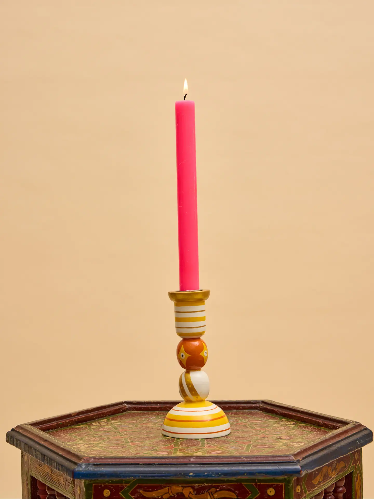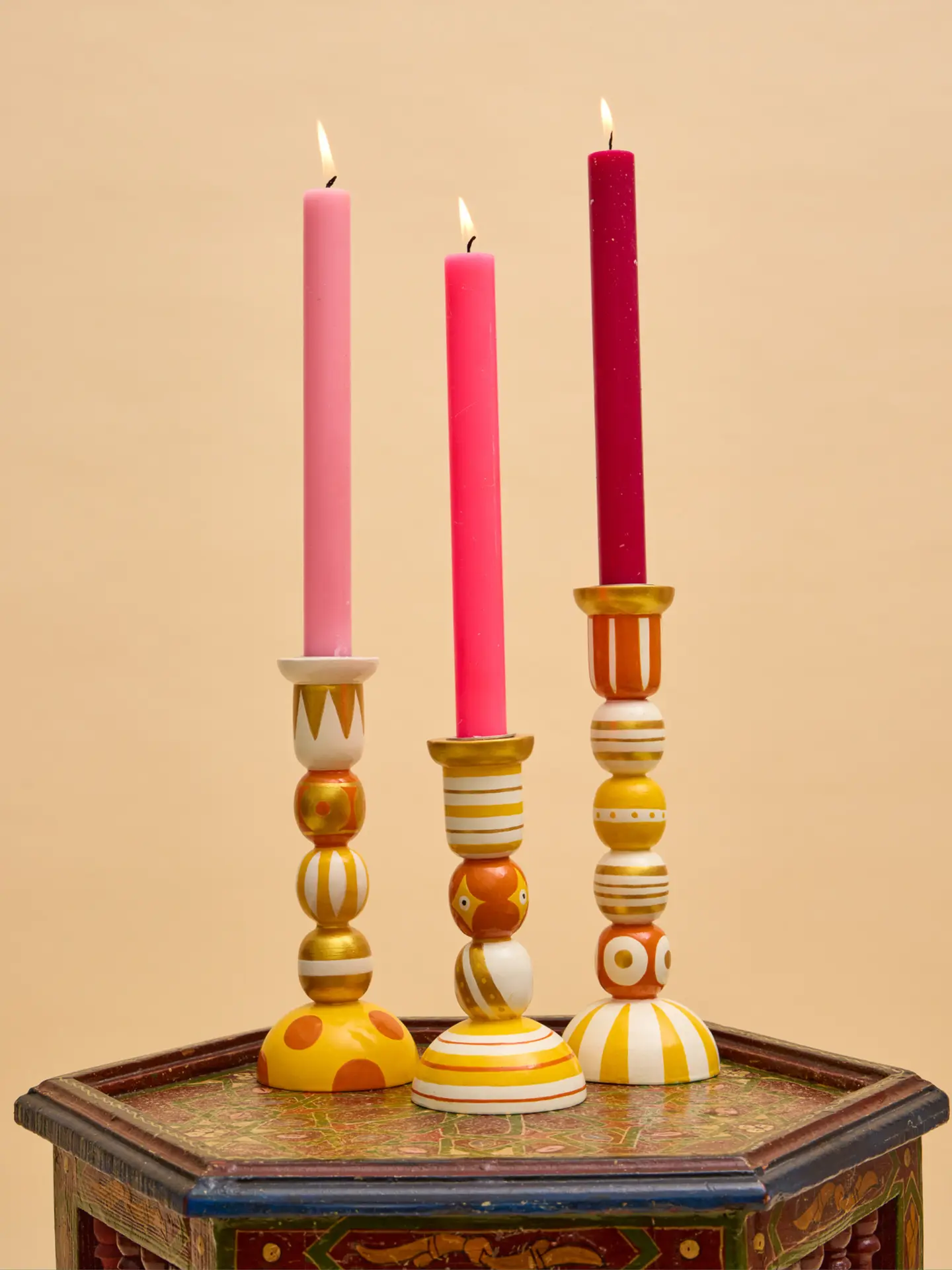 Available in varying heights to give impact and interest to your tablescapes and centrepieces. Designed in London and hand turned by Subroton and hand painted by Iqbal in Southern Bangladesh.