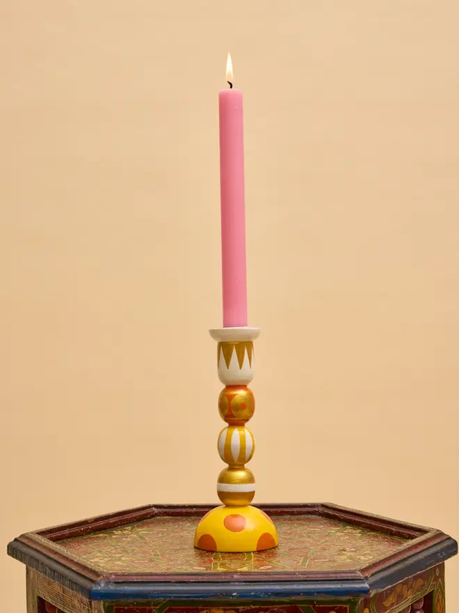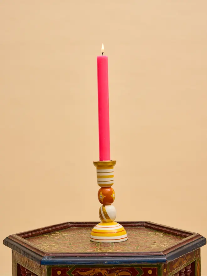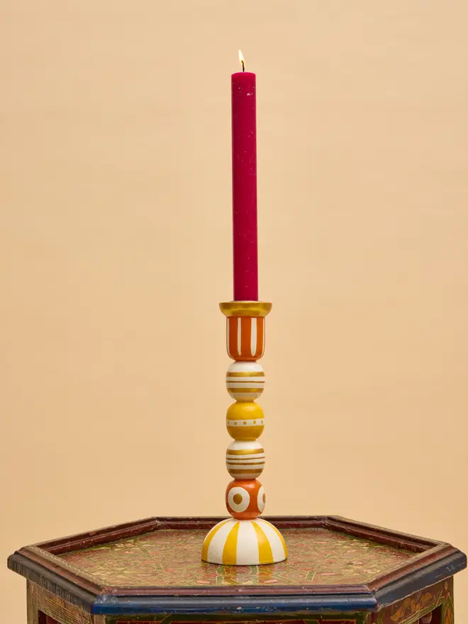 The Jacksons' Fiesta wooden candlesticks have been hand-turned and hand-painted, and have an aluminium holder designed to provide a secure and safe base for candles.
