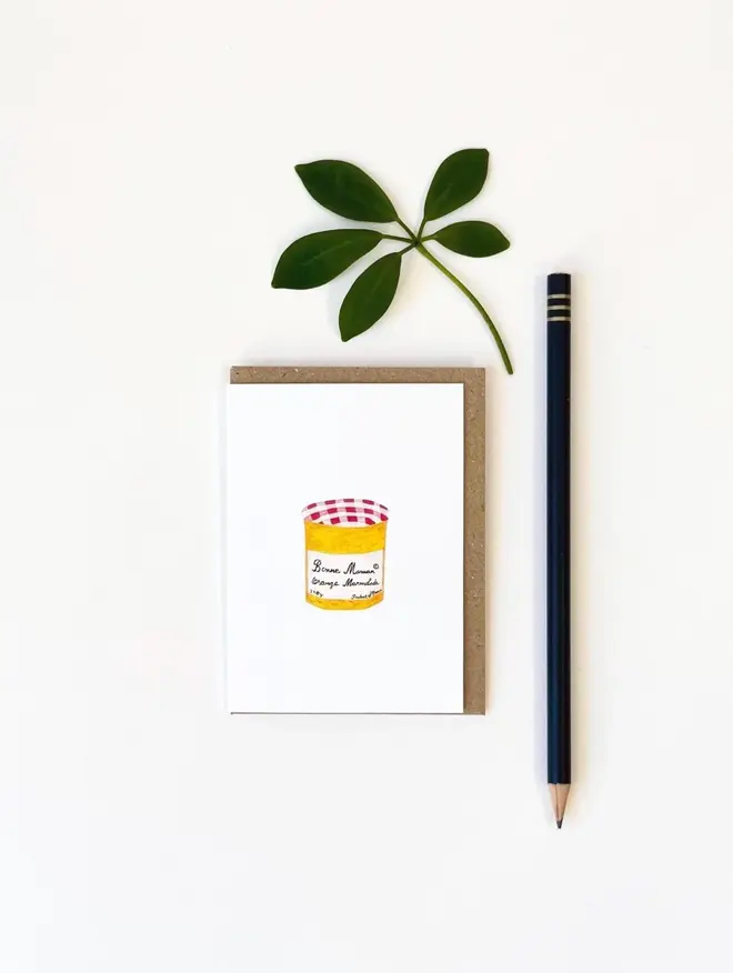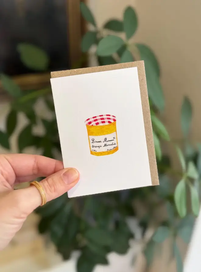 Orange Marmalade Jar watercolour mini card. Hand painted by me and professionally printed on delicately textured matte white 324 gsm luxury print paper.