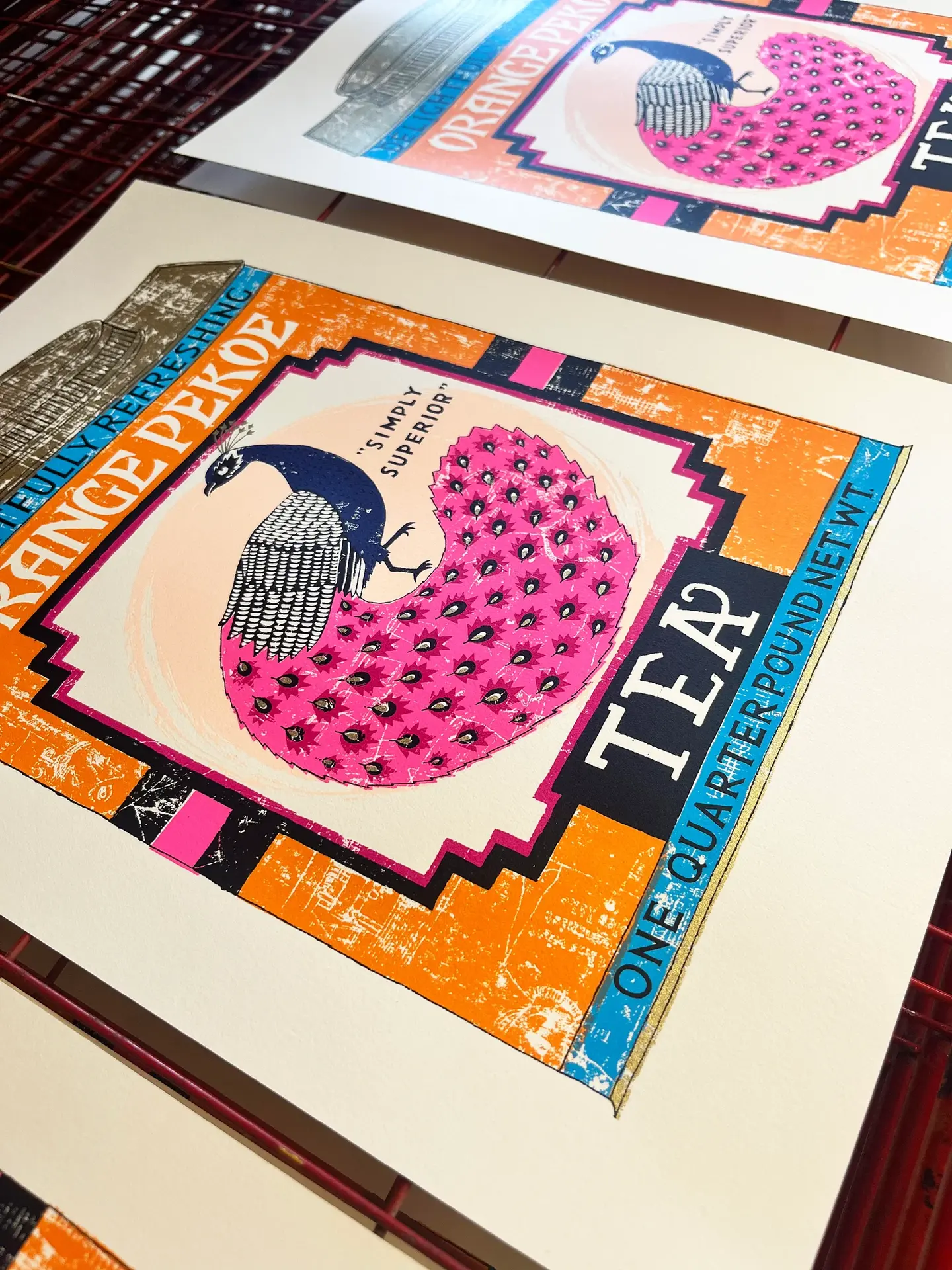 Orange Pekoe Peacock Tea Tin Screenprint Tip Top Tea