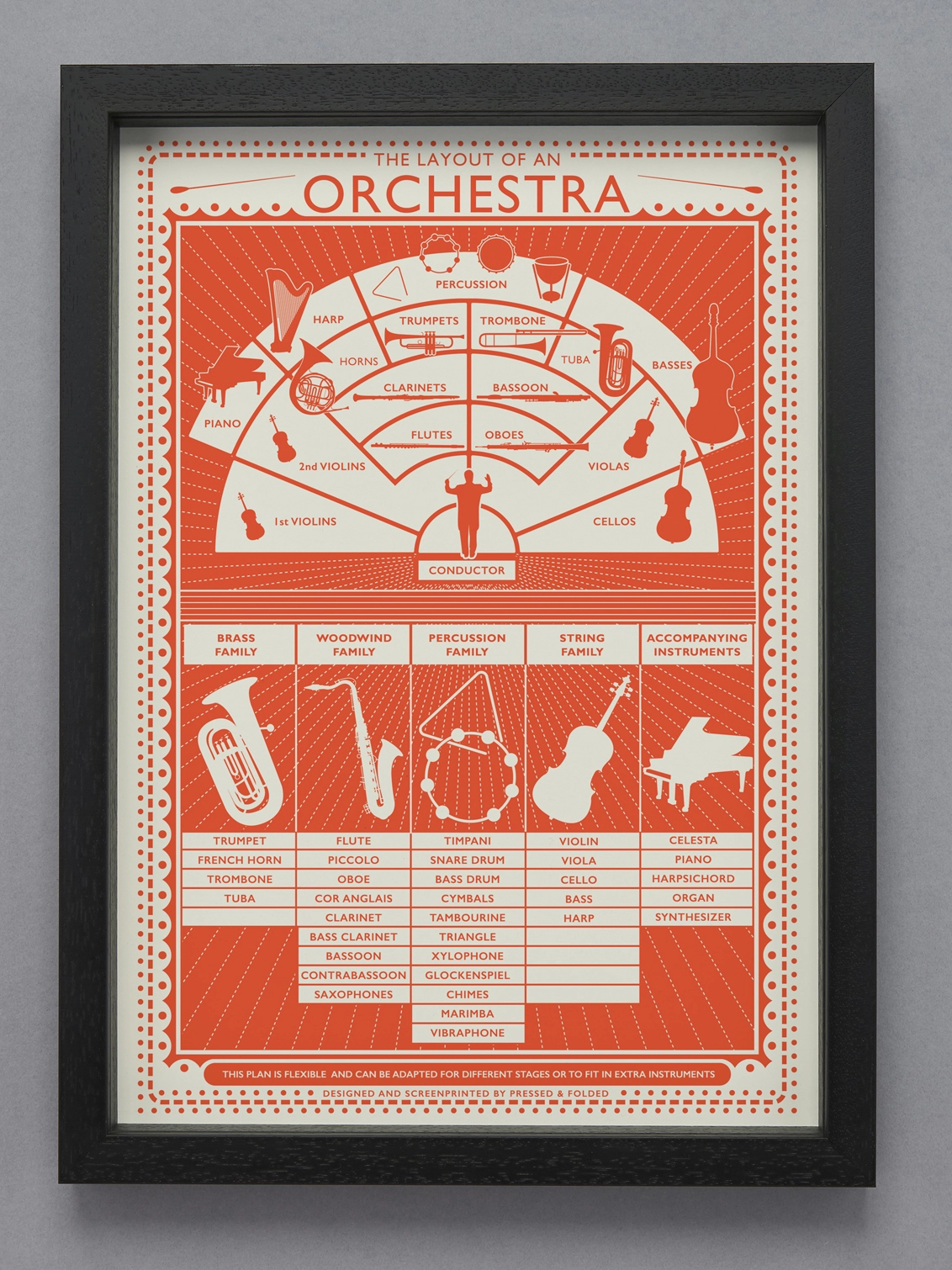 'Orchestra' A hand printed one colour screenprint, A3 in size so it fits easily into an off the shelf frame...