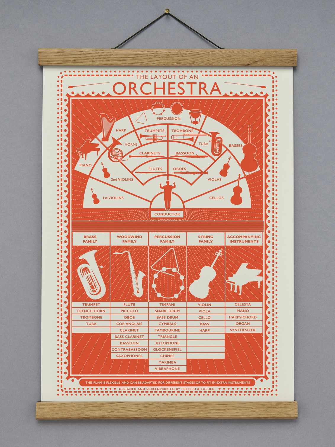'Orchestra' A hand printed one colour screenprint, A3 in size so it fits easily into an off the shelf frame.