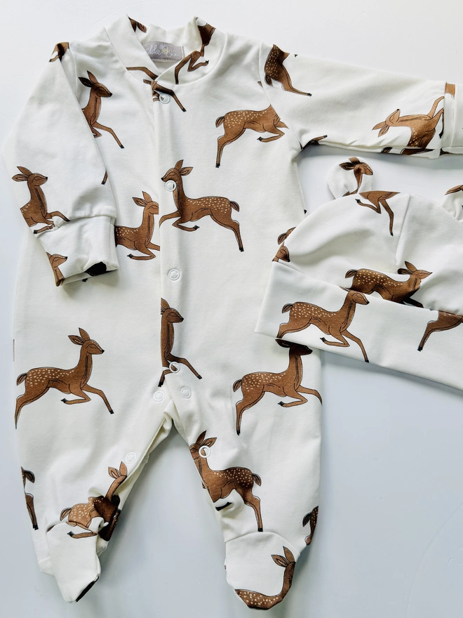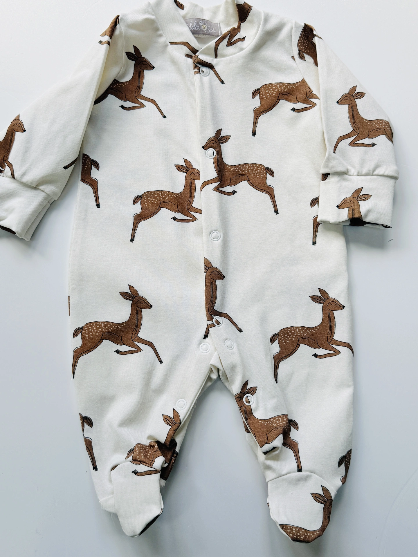 Organic Cotton Baby Sleep suit In Cream Deer Print
