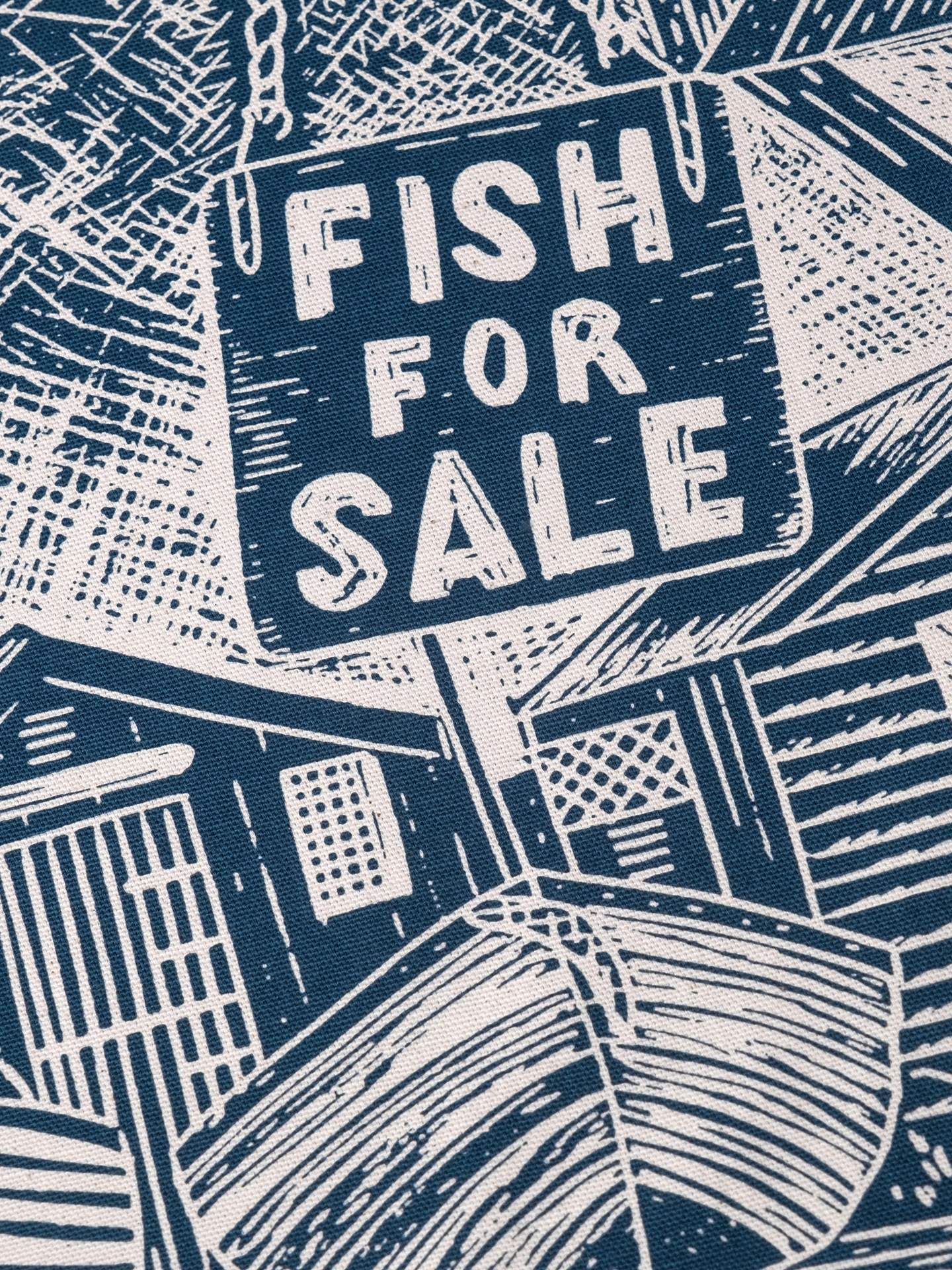 Organic Cotton Tea Towel with Fishermans Huts Lino Print
