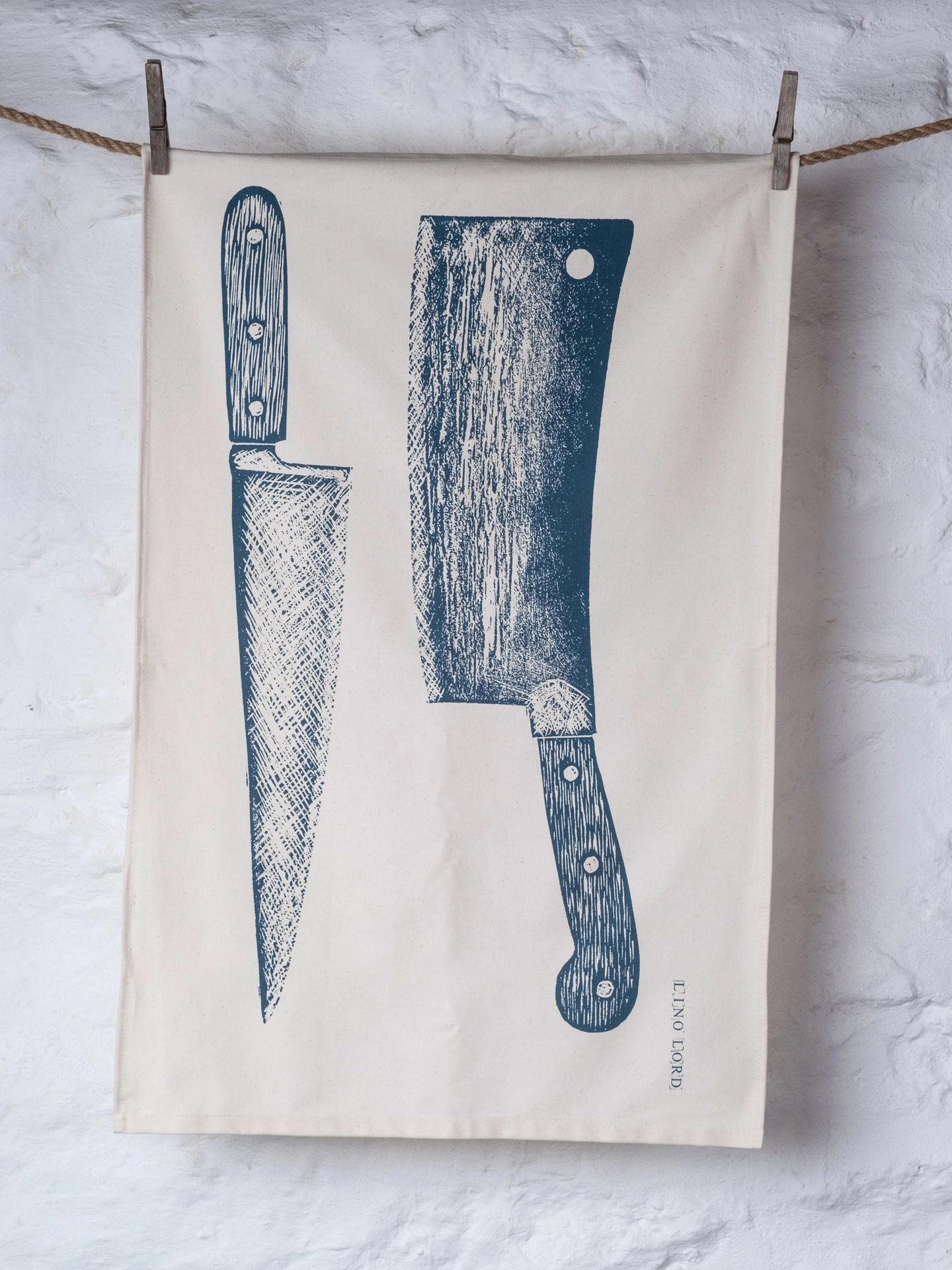 Organic Cotton Tea Towel with my original Knife and Cleaver Lino print.