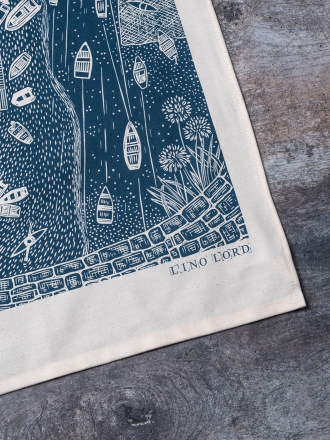 Organic Cotton Tea Towel with my original Summer, St Mawes Lino print.