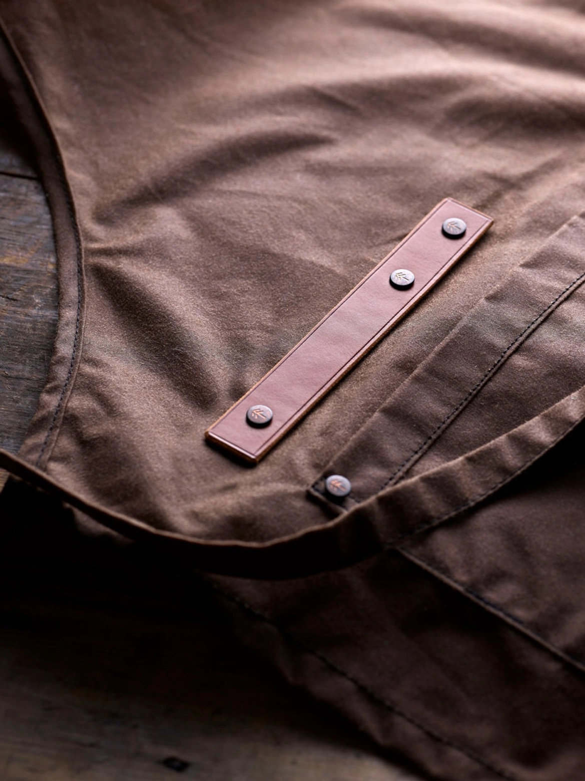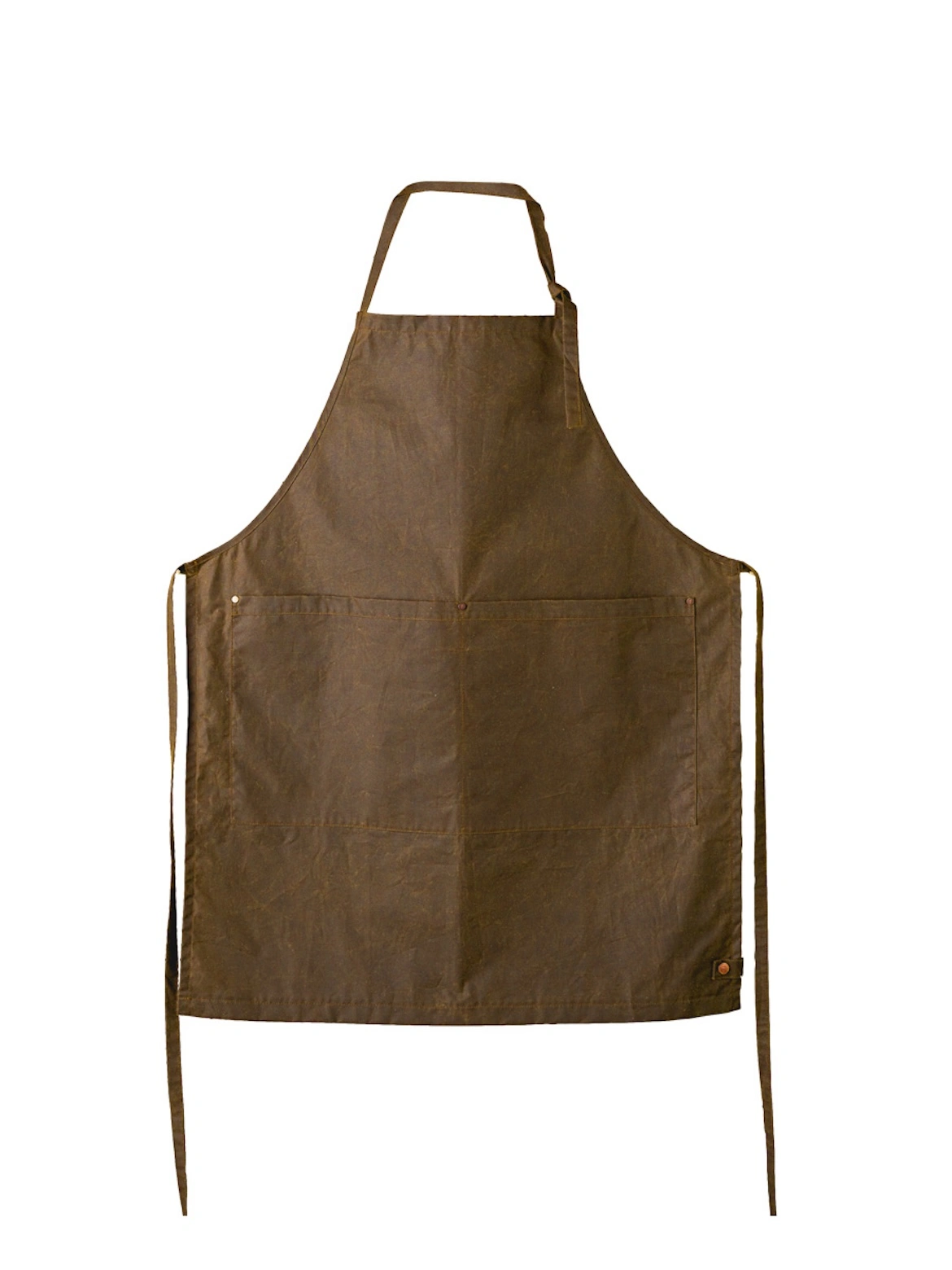 Our Original pattern full bib apron uses lightweight yet hard wearing, classic British waxed cotton. Extra long waist straps and adjustable neck tie make this incredibly comfortable to wear. Two large pockets secured with copper rivets ensure that this apron will last.