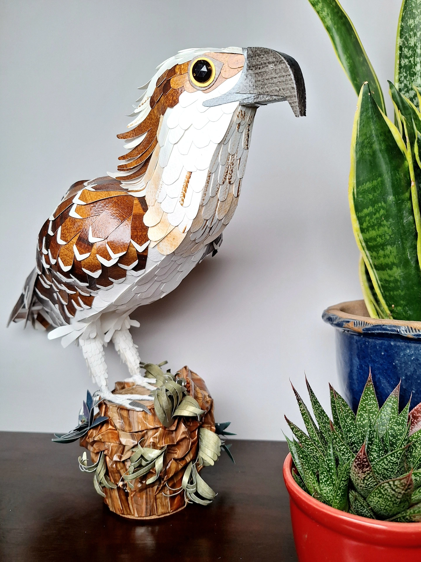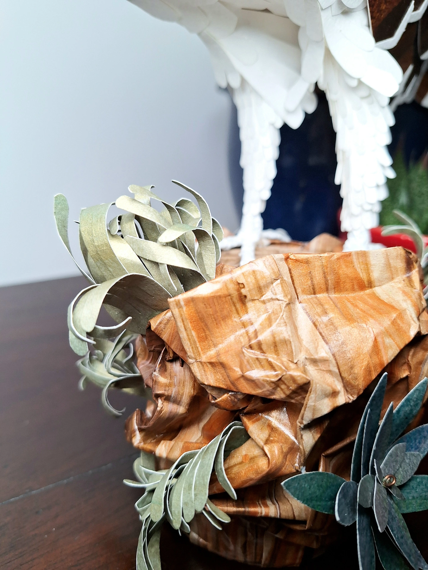 He is varnished with a UV protective lacquer, and the 300 GSM thickness paper ensures that he is robust and sturdy. I design and make my sculptures entirely by hand. They are intended to emulate the joy I find in our natural world, and to bring a bit of that majestic wonder into your décor. I do hope you like this piece!