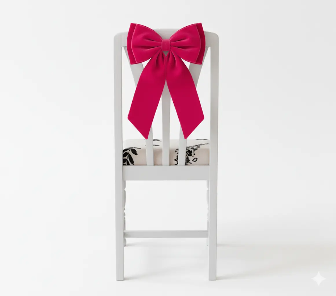 Oversized bows made from fabric off-cuts and repurposed as a sustainable hanging decoration.
