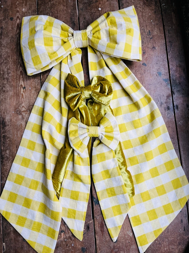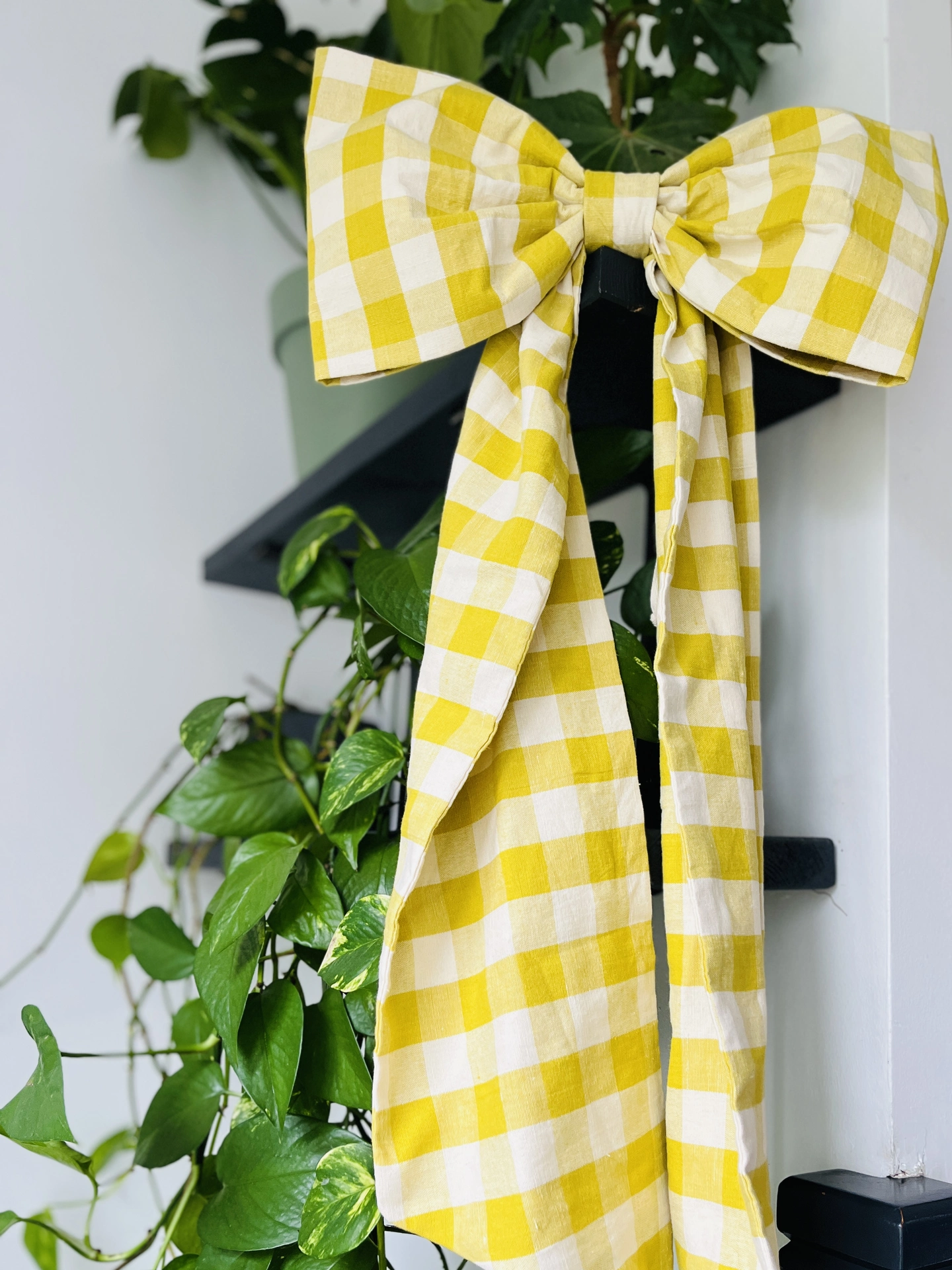 Oversized Jumbo Citron Gingham Linen / Cotton Bow