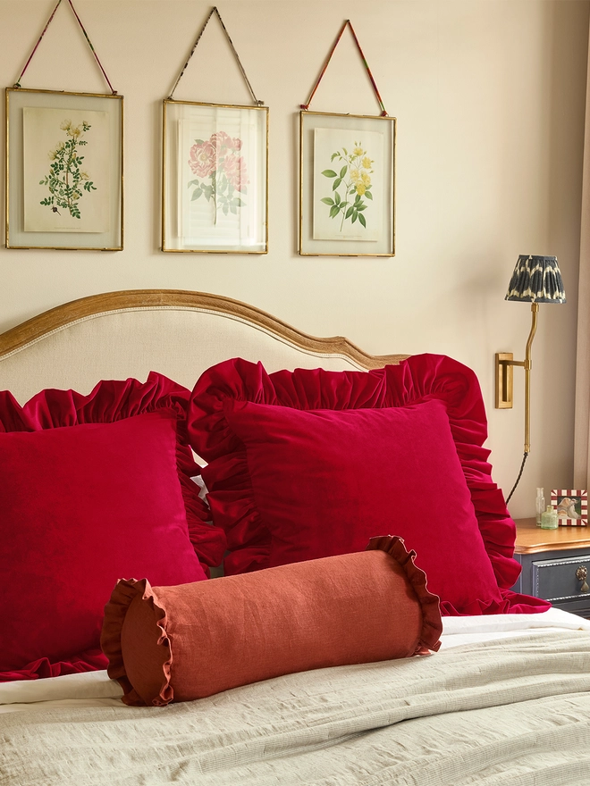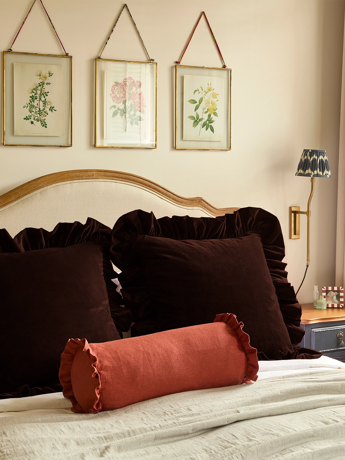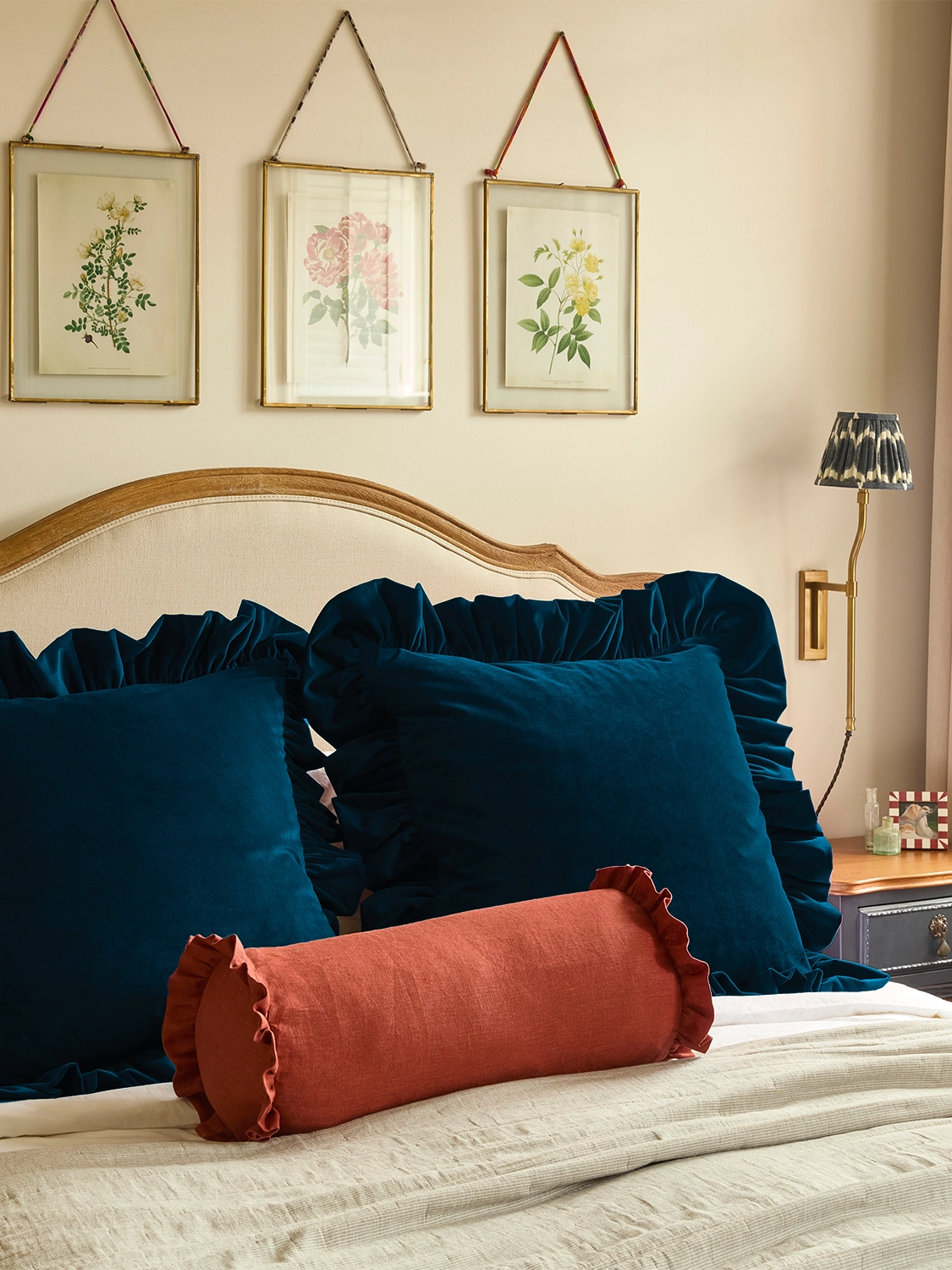 At 60 x 60cm with a full 10cm ruffle, this cushion is made to be noticed. Pair two together at the head of a bed and you have an instant headboard moment — a favourite trick of interior stylists and a very good reason to order two.