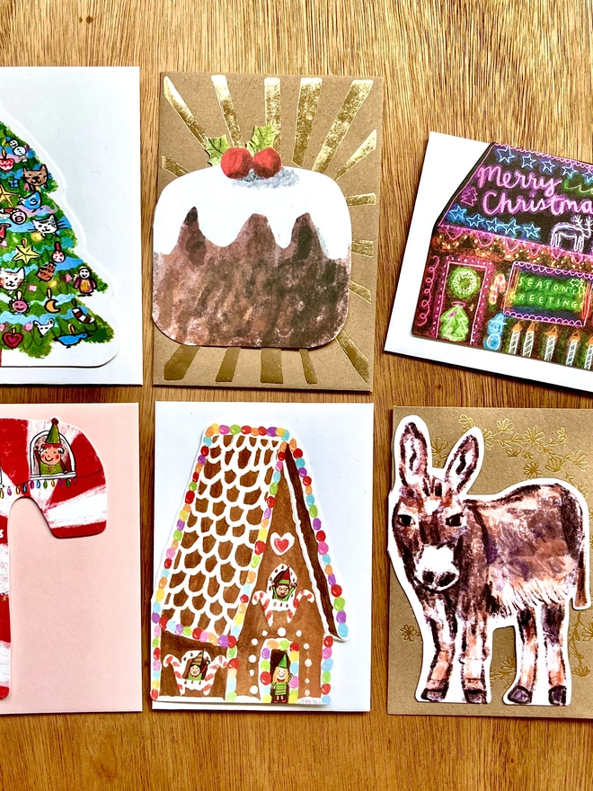 6 original and delightful Christmas cards.
