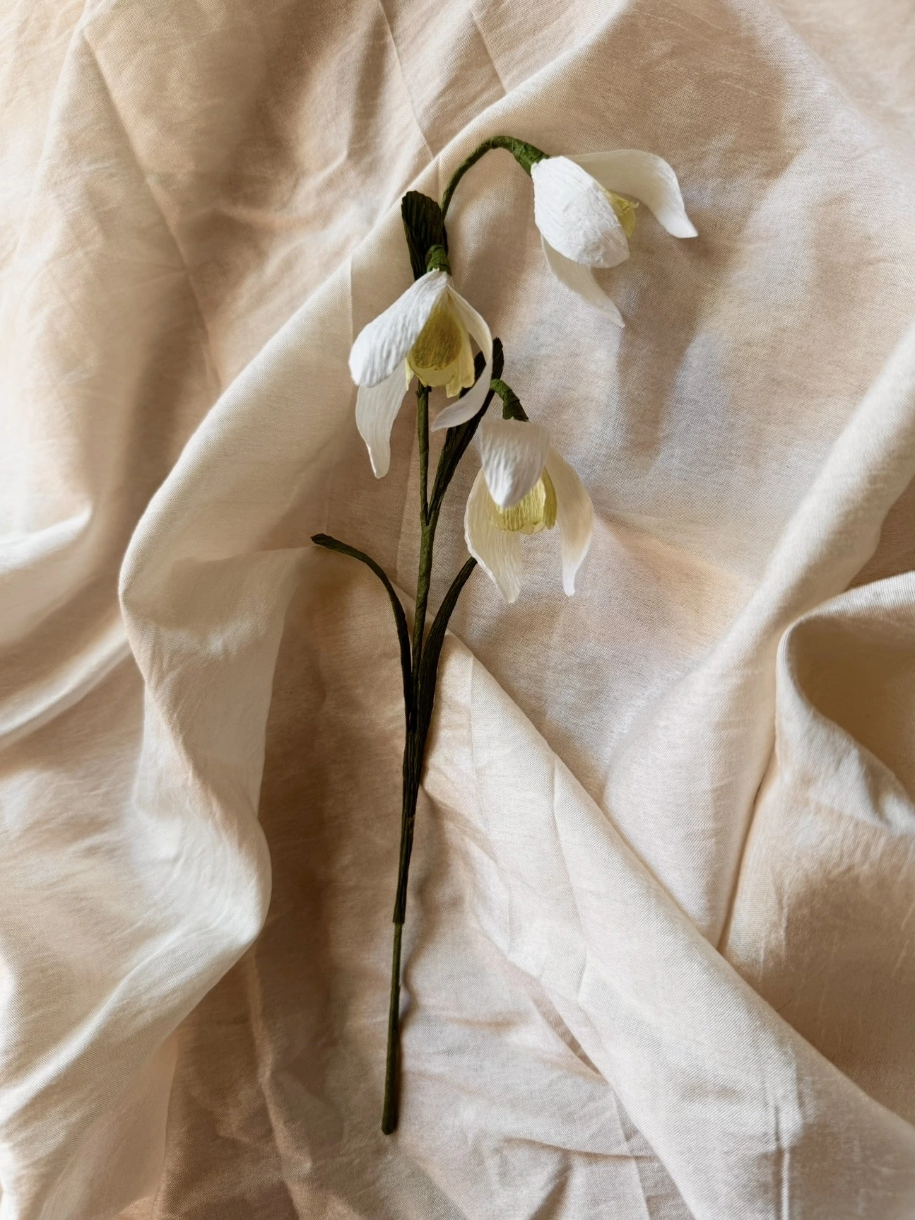 This paper snowdrop flower is a long-lasting alternative to fresh flowers, perfect for bringing a subtle touch of spring into your home all year round. Its elegant simplicity makes it ideal for minimalist décor, botanical interiors, woodland displays, or as a meaningful keepsake flower.