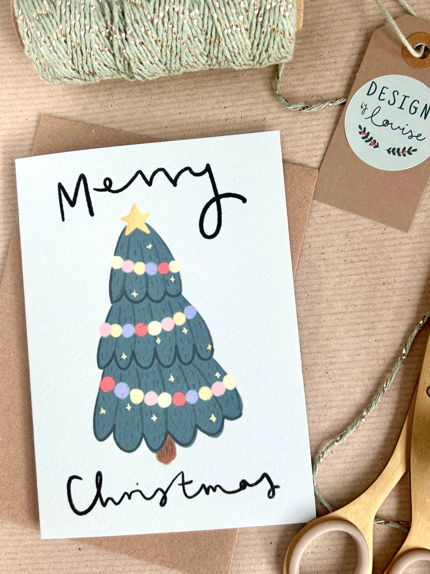 A pastel colour palette for this cute Christmas tree illustration. A colourful card to wish someone a Merry Christmas.