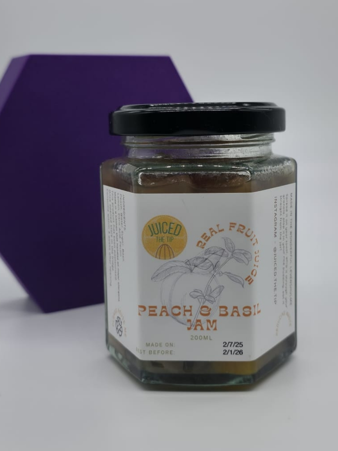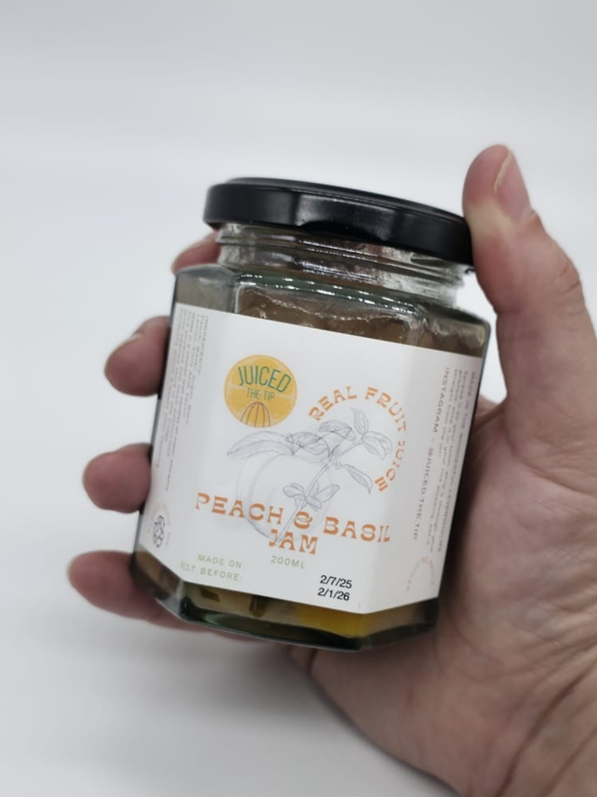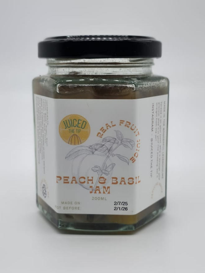 Ingredients: Peach, Water, Sugar, Basil, Lemon, Citric Acid, Pectin