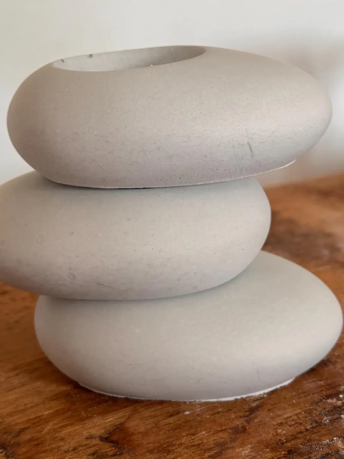 Beautiful handmade concrete tea light holders with an organic pebble shape, they feel lovely to hold! Ideal to give to friends as a special gifts or just to keep for yourself!