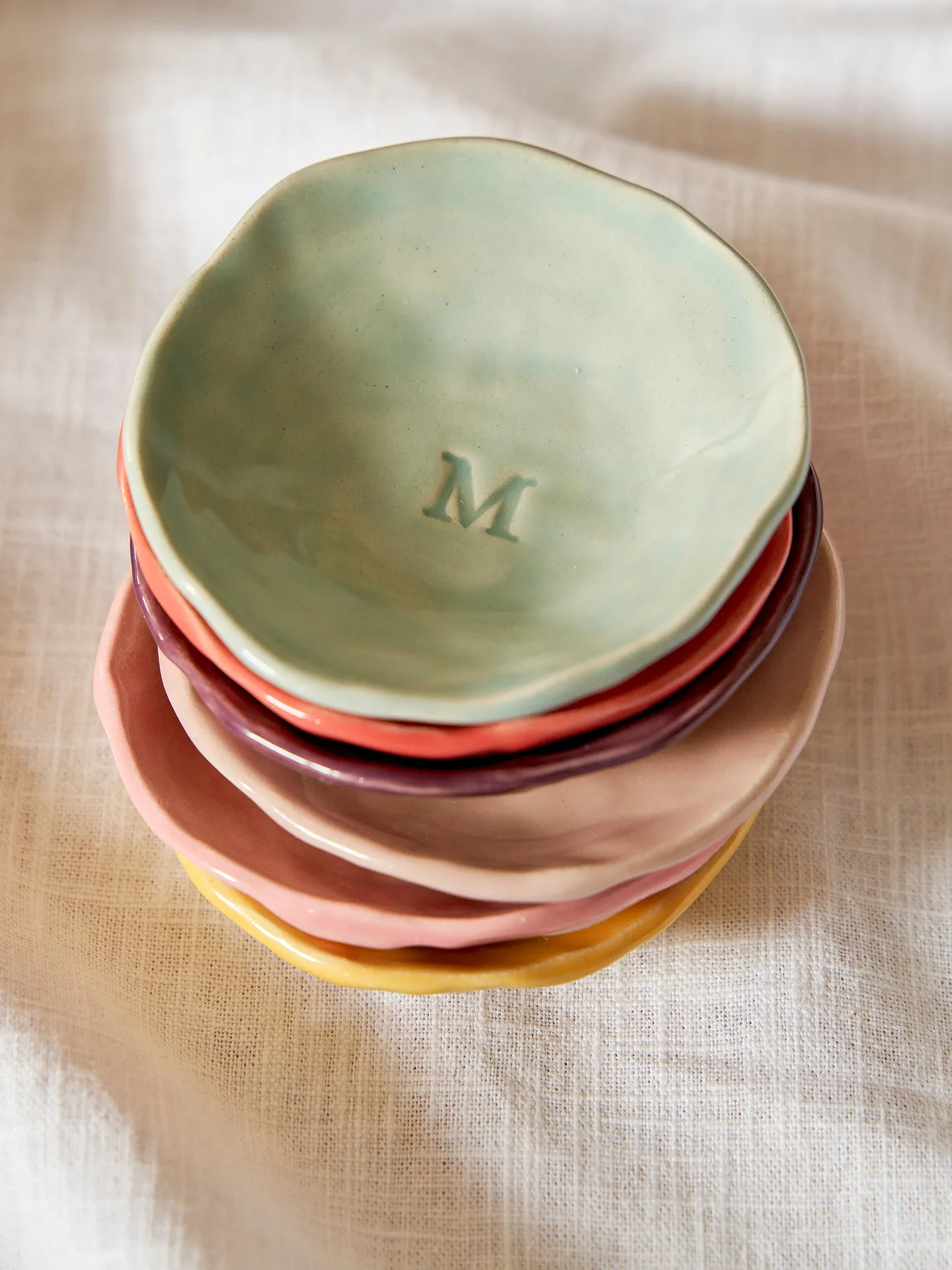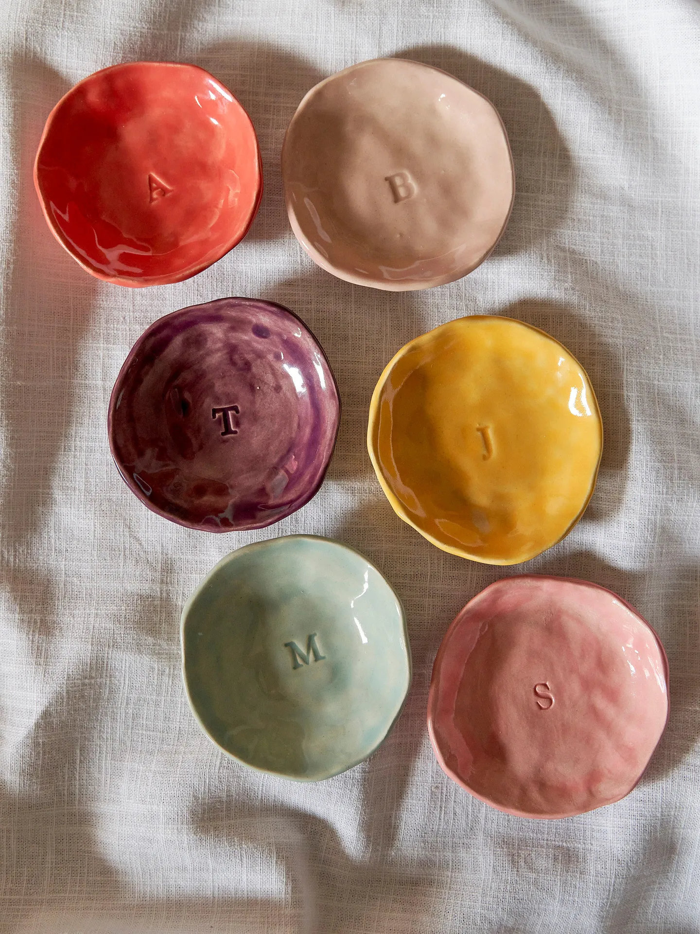 Add a pop of colour to your dressing table with a Personalised Alphabet Ceramic Trinket Dish by Jenny Hopps Pottery. Each dish is carefully handmade, featuring a playful organic shape, glossy glaze, and a single embossed initial.