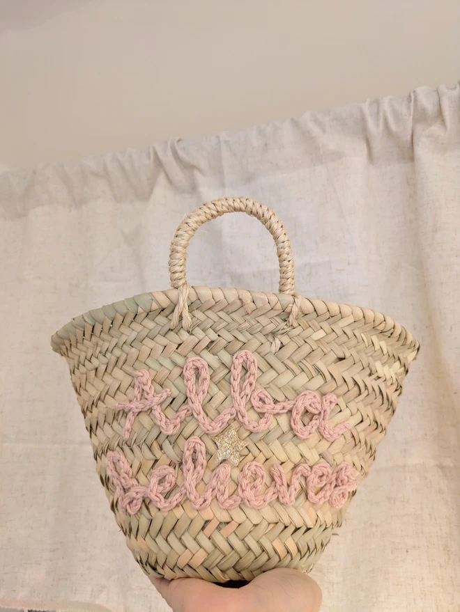 This personalised basket bag is perfect for carrying little treasures and makes an ideal holiday companion. Handwoven from sustainable palm leaf, it’s a lightweight and practical accessory for any occasion.