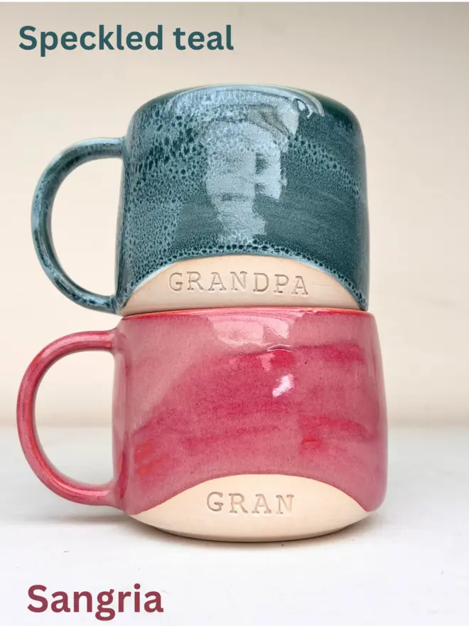 Personalised ceramic mug glazed in a block of colour with your choice of personalisation to create a unique gift.