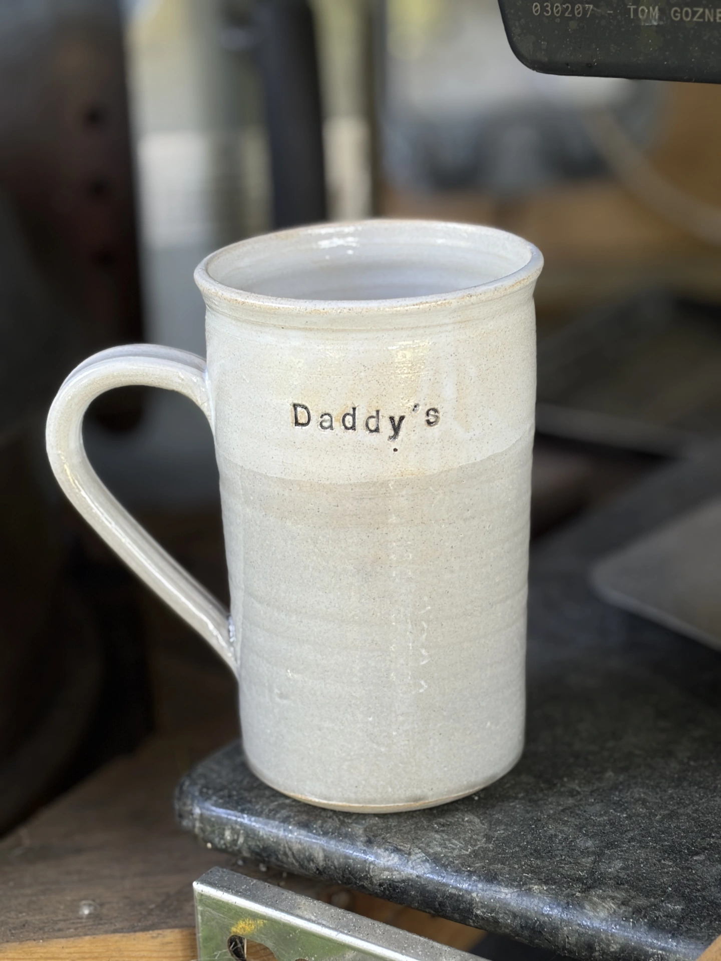 Each mug is glazed in white all over, then dipped in grey or my 'Midnight' blue glaze.