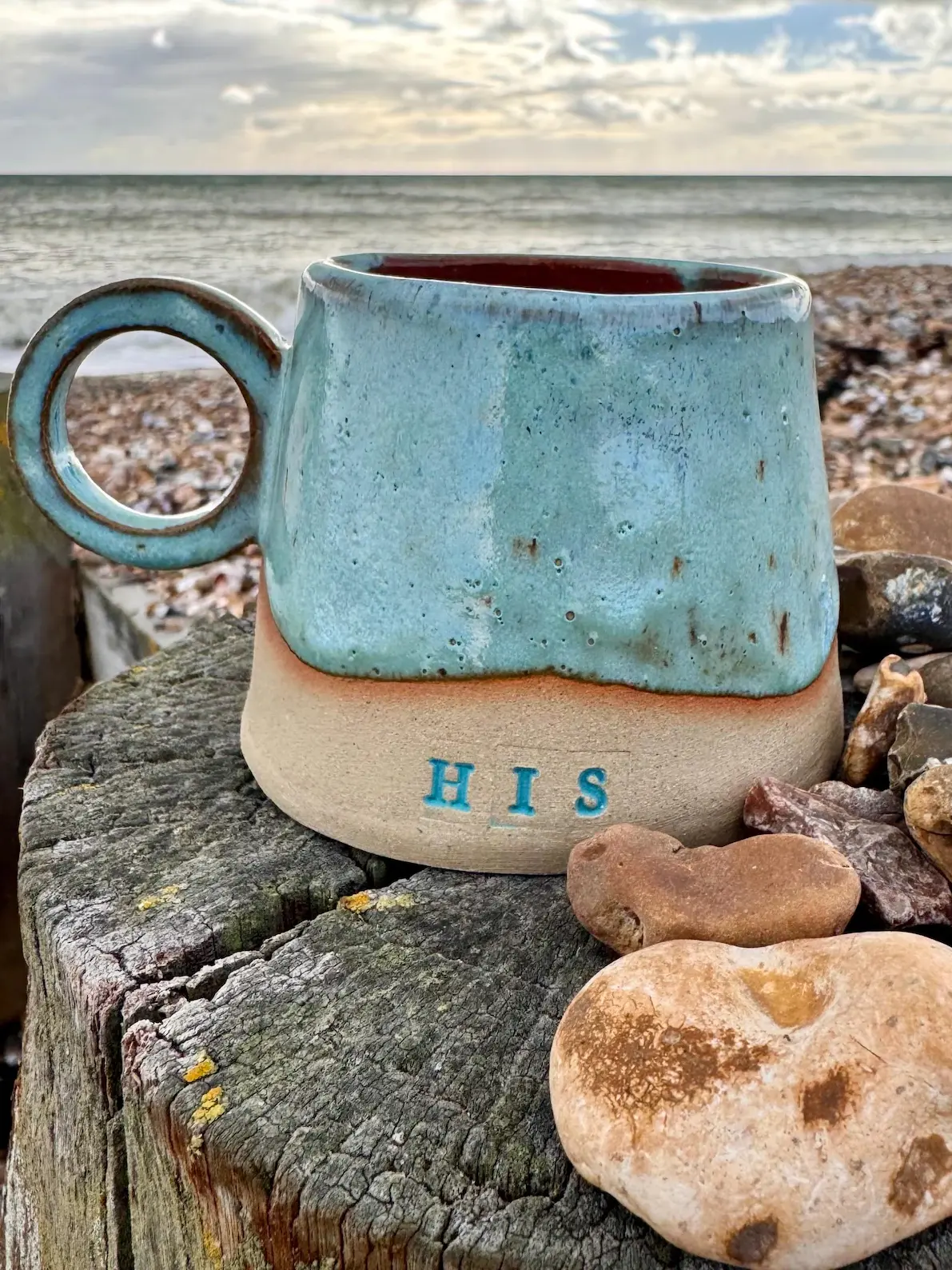 A lovely hand built ceramic stoneware hug mug, with the choice of whatever text makes it personal to you. Undulating lines and textures make this mug and all others in this collection truly unique.
