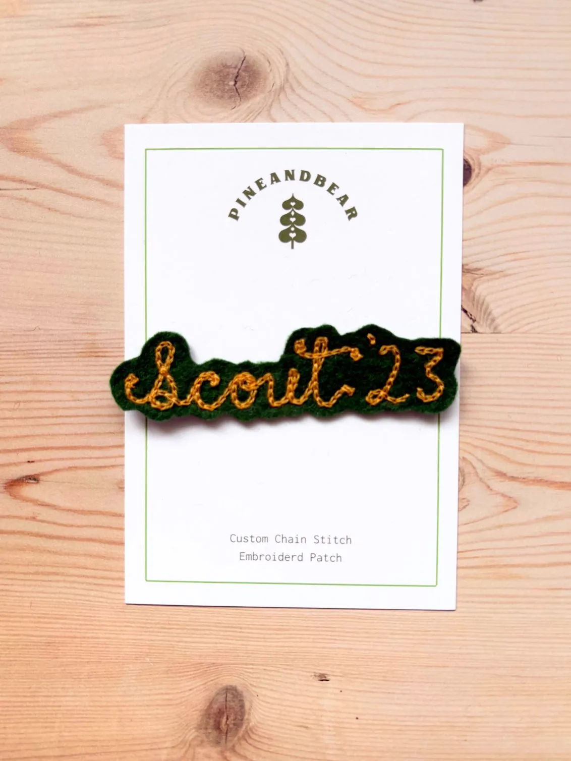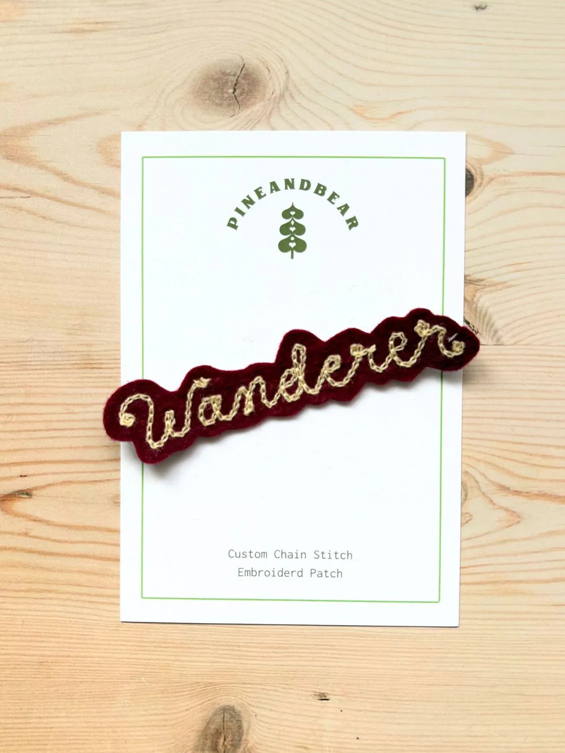 Handmade chain stitch patch, personalised with a single word or short phrase of your choice.