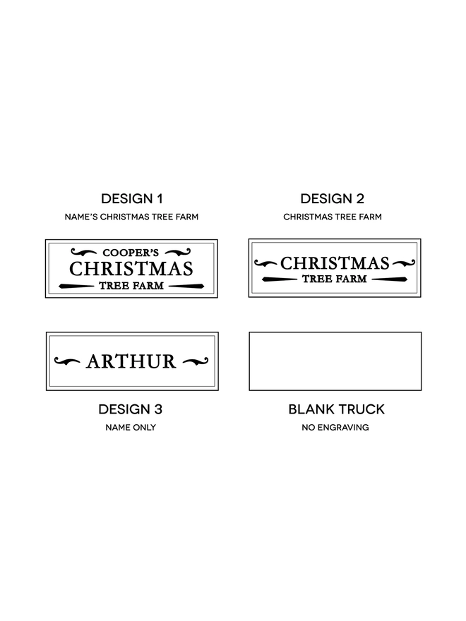 Each truck is made with solid, European beech wood and painted and assembled by hand in our studio. Choose from our designs to personalise your toy by adding a name or leaving the truck bed blank. Note that engraving is on one side of the truck and tree only.