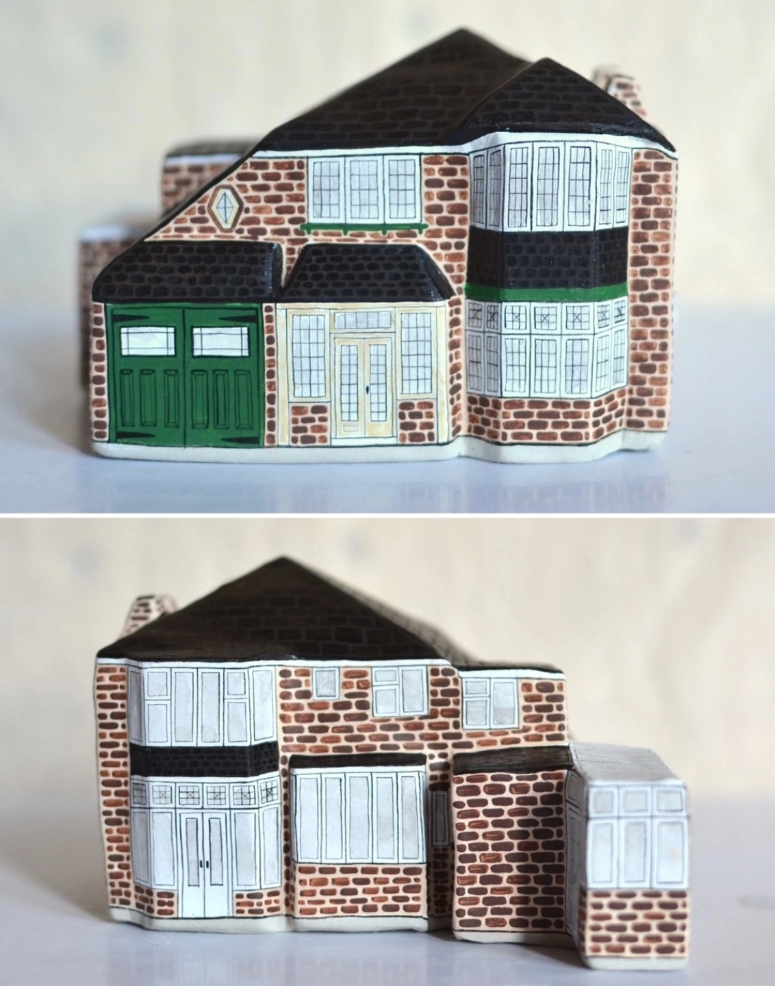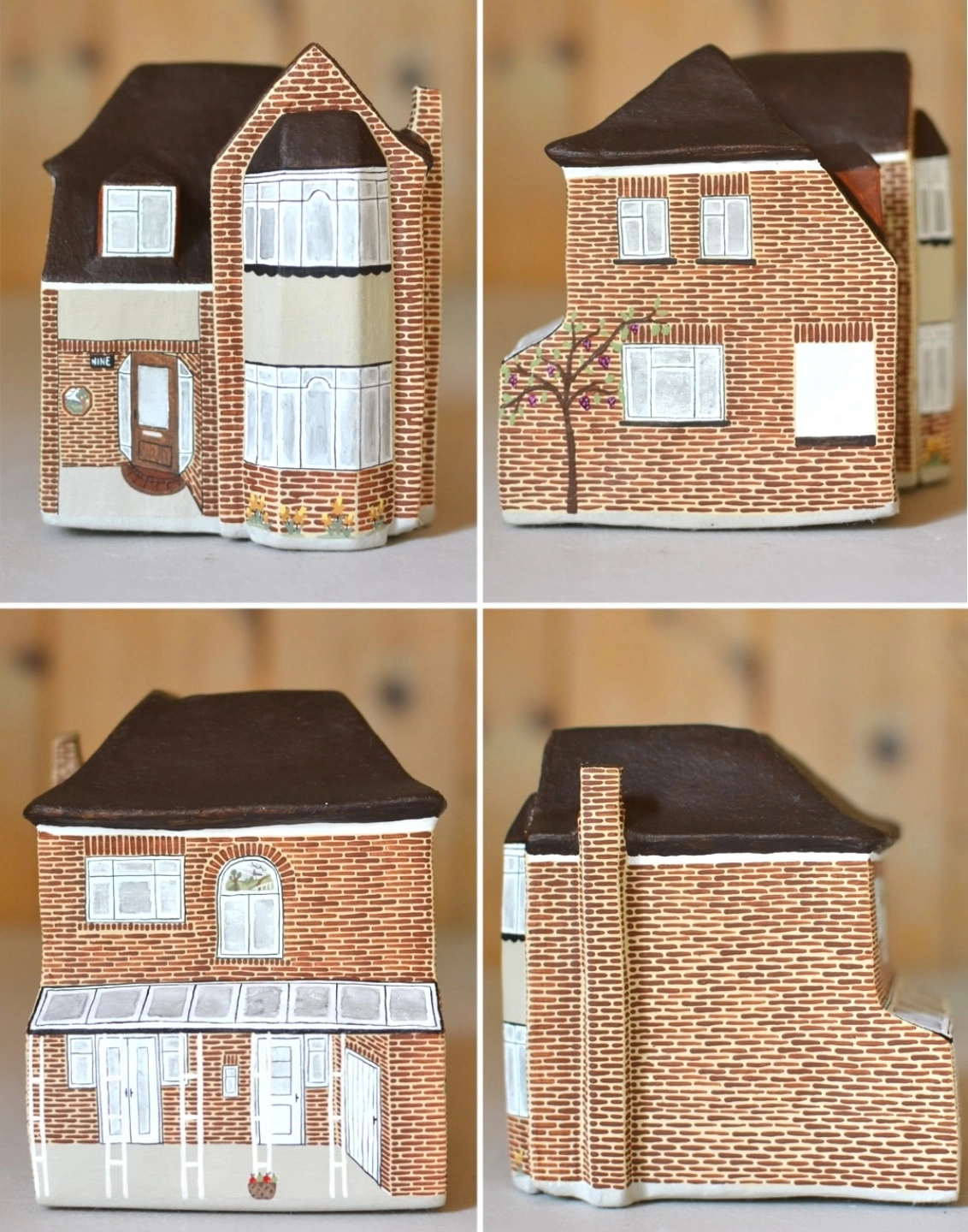 I will then hand paint your clay house in as much detail as possible using coloured acrylic paint, using the photographs you send me as a reference.