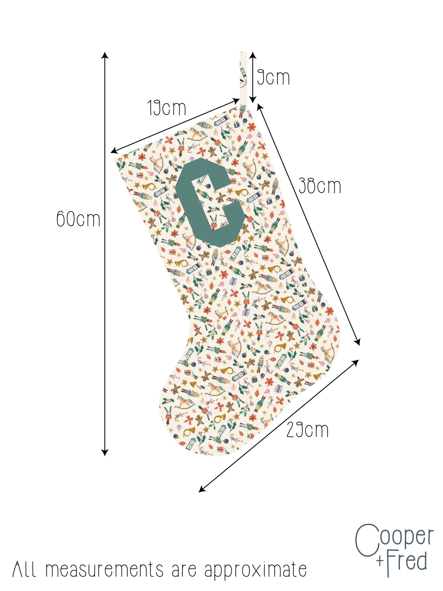 This personalised quilted Christmas stocking in a beautiful Ditsy Nutcracker print will bring added character to any home at Christmas time. Hand-sewn in a stunning Ditsy Nutcracker print, it can be personalised with your choice of letter and letter colour. Each stocking is made-to-order and unique, making them an item to treasure for many years to come.