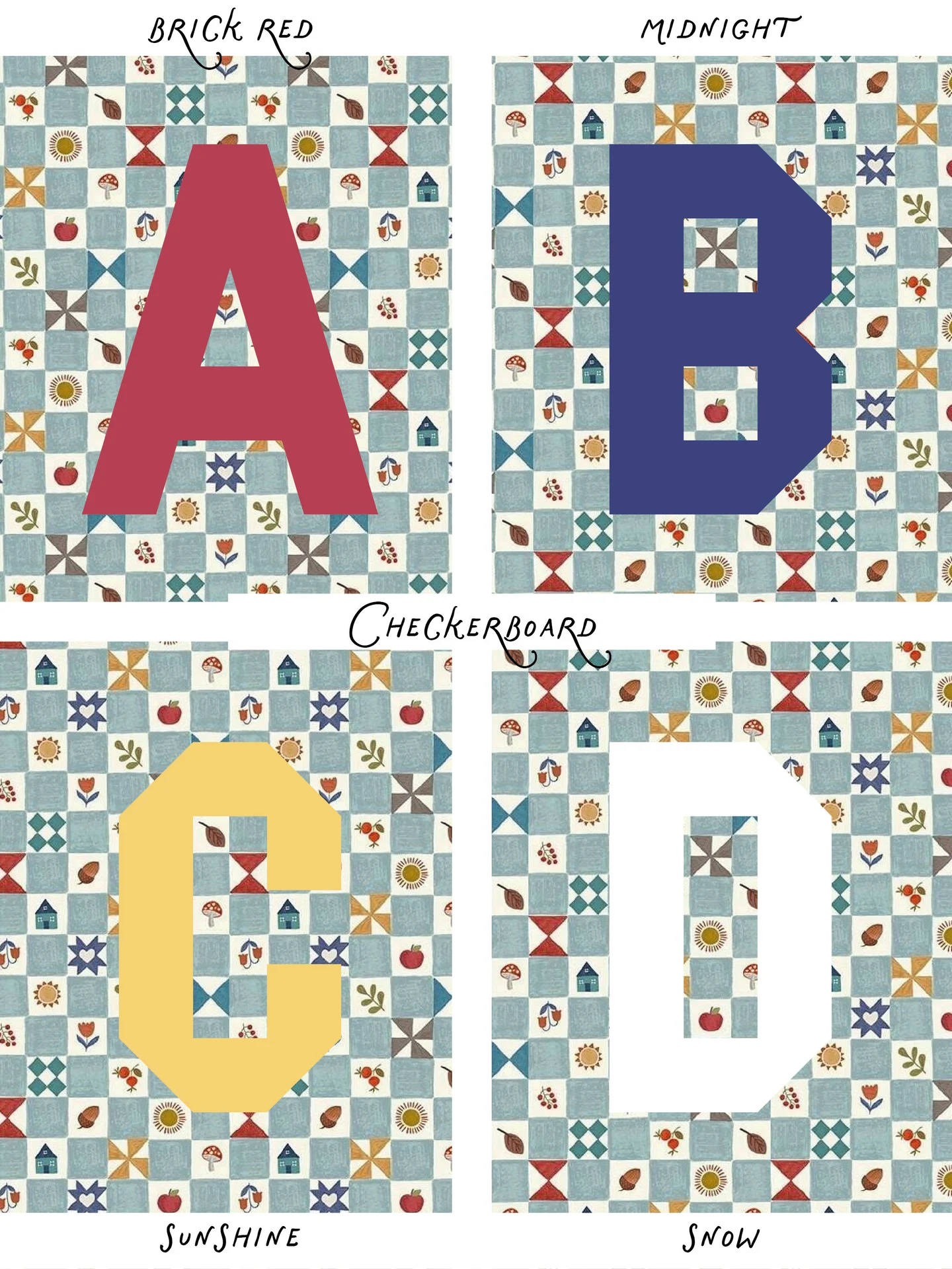The Easter bag is made from a patchwork front and has the same print on the back. It is wadded to give it structure, fully quilted, and fully lined in a plain cotton. There is a choice of four colours for the letter and the drawstring tie will be in the same colour.