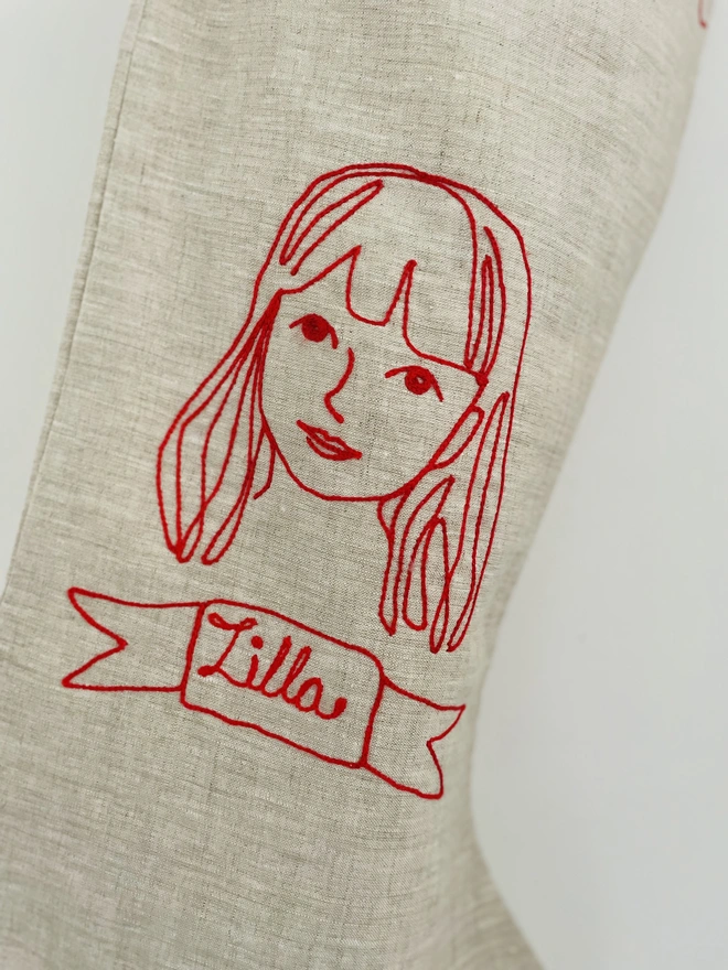 Bring warmth, love, and personality to your holiday décor with our Custom Embroidered Portrait Linen Stockings. Each stocking is beautifully handmade from natural linen, fully lined with soft natural calico and embroidered with a portrait of your loved ones.. family, friends, or even pets.