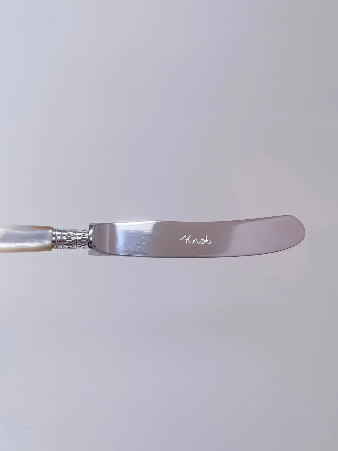 My stock varies so you will probably not receive the same butter knife as the one on the picture. All handles are made out of real mother of pearl but details vary on each of them. The blade is Stainless Steel.