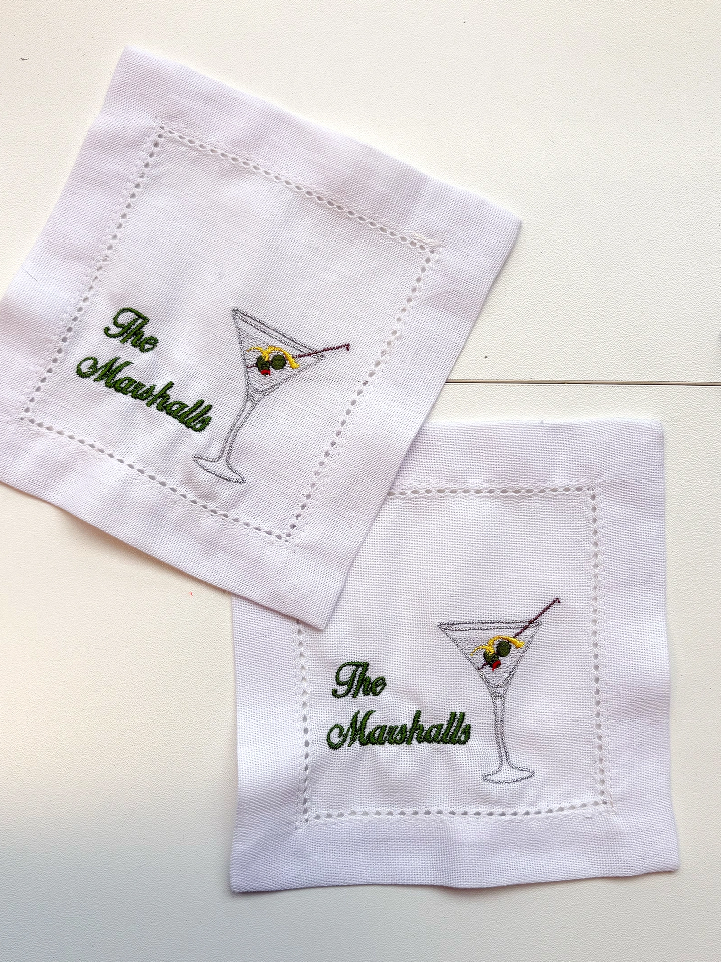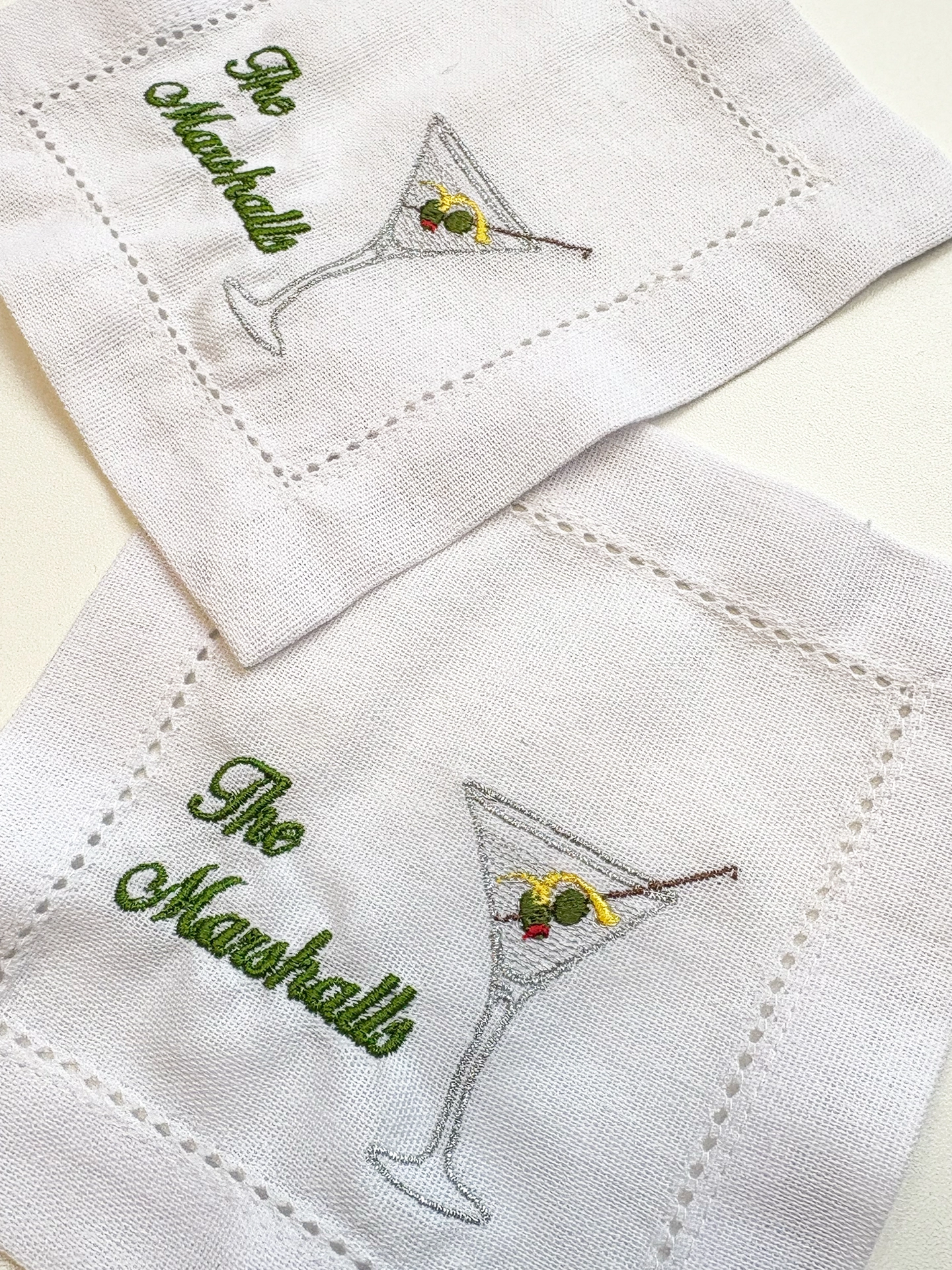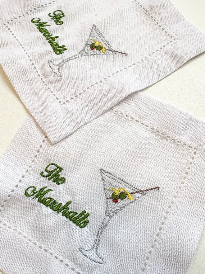 Add a unique and thoughtful touch to your home decor or entertaining essentials with this set of embroidered linen cocktail napkins!