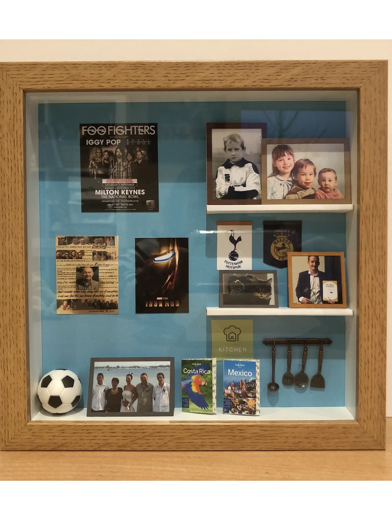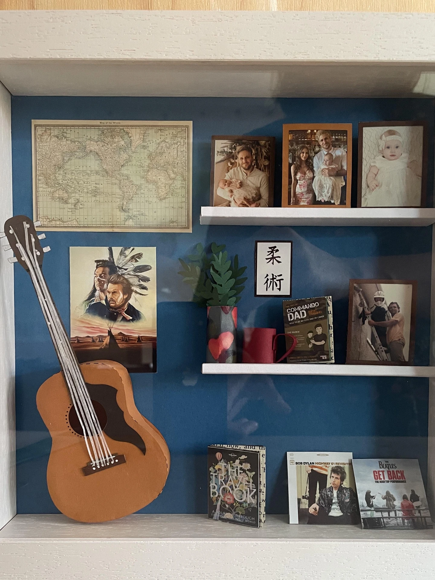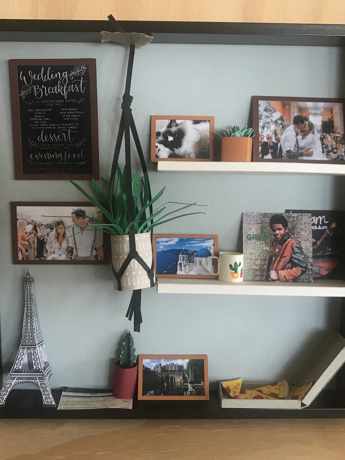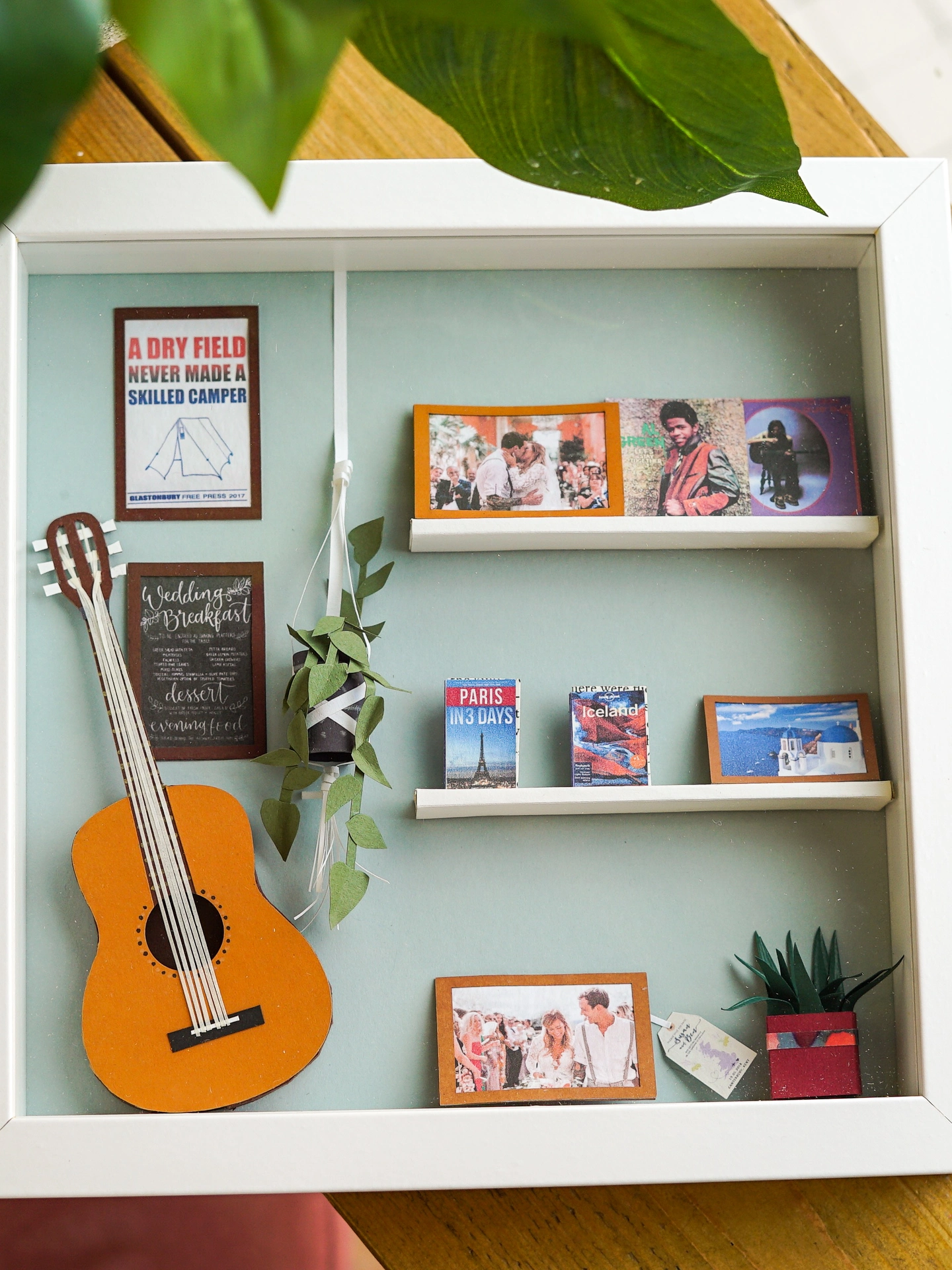This Paper Piece is a Unique gift. Ideal for a Paper Anniversary or gift for parents or husband. The client selects every object in this box, including favourite places to travel, photos, artwork from their home, favourite music