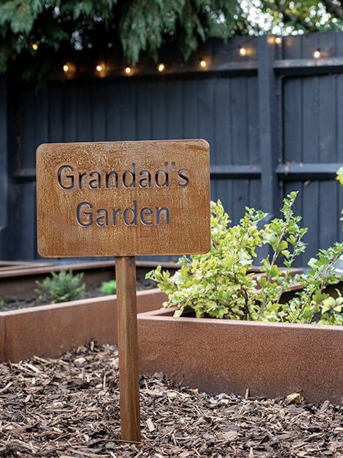 Elevate your outdoor space with a bespoke, personalised garden sign. Engraved with a name or message of your choice, our Corten steel signs add a personal touch to your space that's sure to make you smile every time.